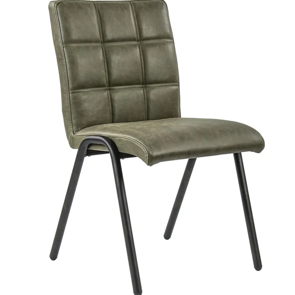 Straluma Olijf groene eettafelstoel leder met zwarte pootjes> Eetkamerstoelen