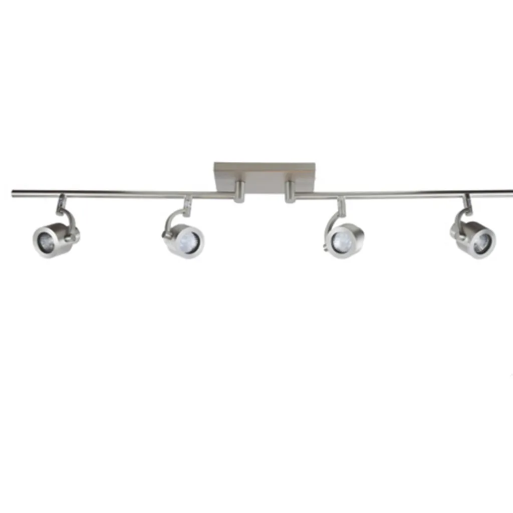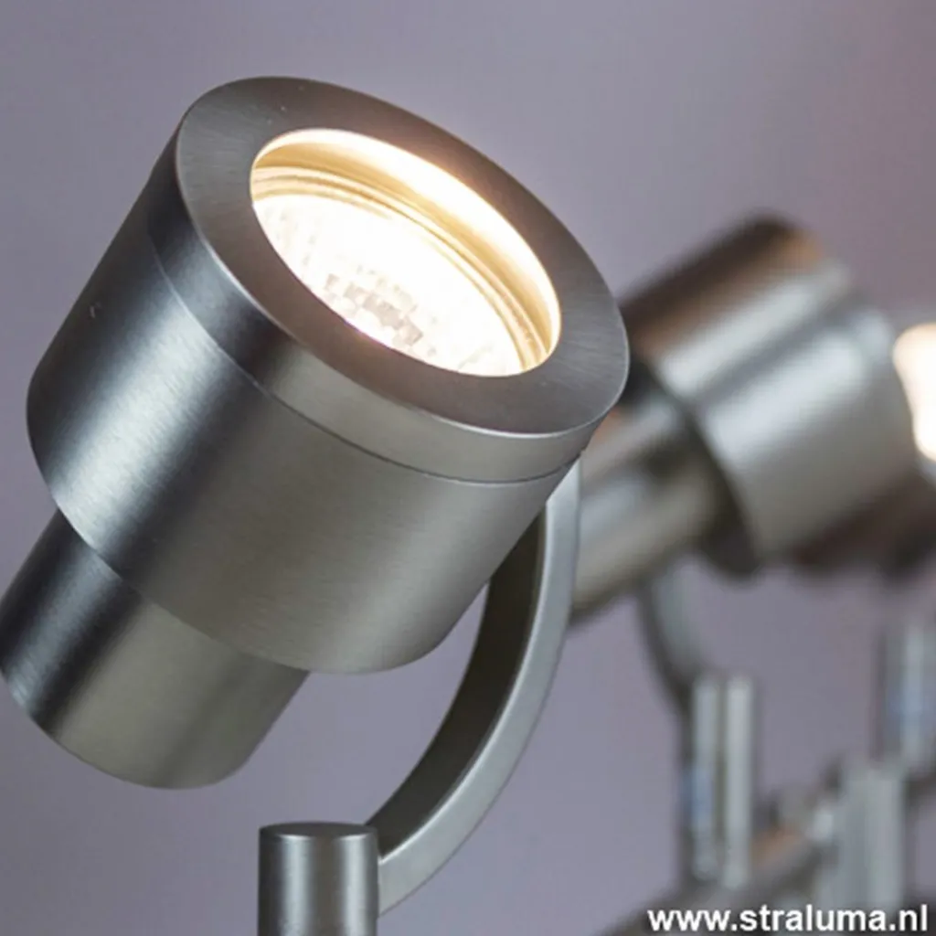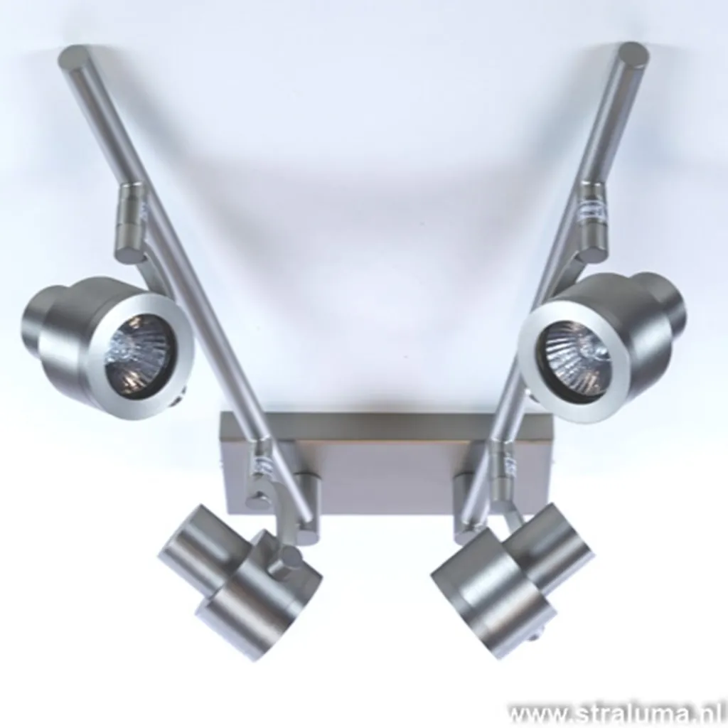 Een strak uitgevoerde stalen plafondlamp met 4 spots, ideaal voor gebruik in diverse ruimtes zoals de keuken, hal, woonkamer of slaapkamer. Door de het moderne uiterlijk van deze plafondspot is hij ook uistekend voor in een kantoor. Door de GU10 fitting kunt u hier uw eigen lichtbron in kiezen zoals LED spotjes. Elke arm van deze moderne opbouwspot is draaibaar, maar ook de spotjes zelf zijn kantelbaar en draaibaar. Hierdoor kunt u het licht laten schijnen in diverse hoeken van de ruimte. Deze plafonnière is uitgevoerd in mat staal.
