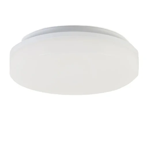 Een moderne basic plafonnière die geschikt is voor meerdere ruimtes in huis. De LED lamp past prima in de hal of de keuken, maar kan vanwege zijn spatwaterbestendigheid (IP44) ook perfect in de badkamer. De kunststof plafondlamp heeft een ronde vorm met rechte randen en loopt naar het plafond iets smaller af.