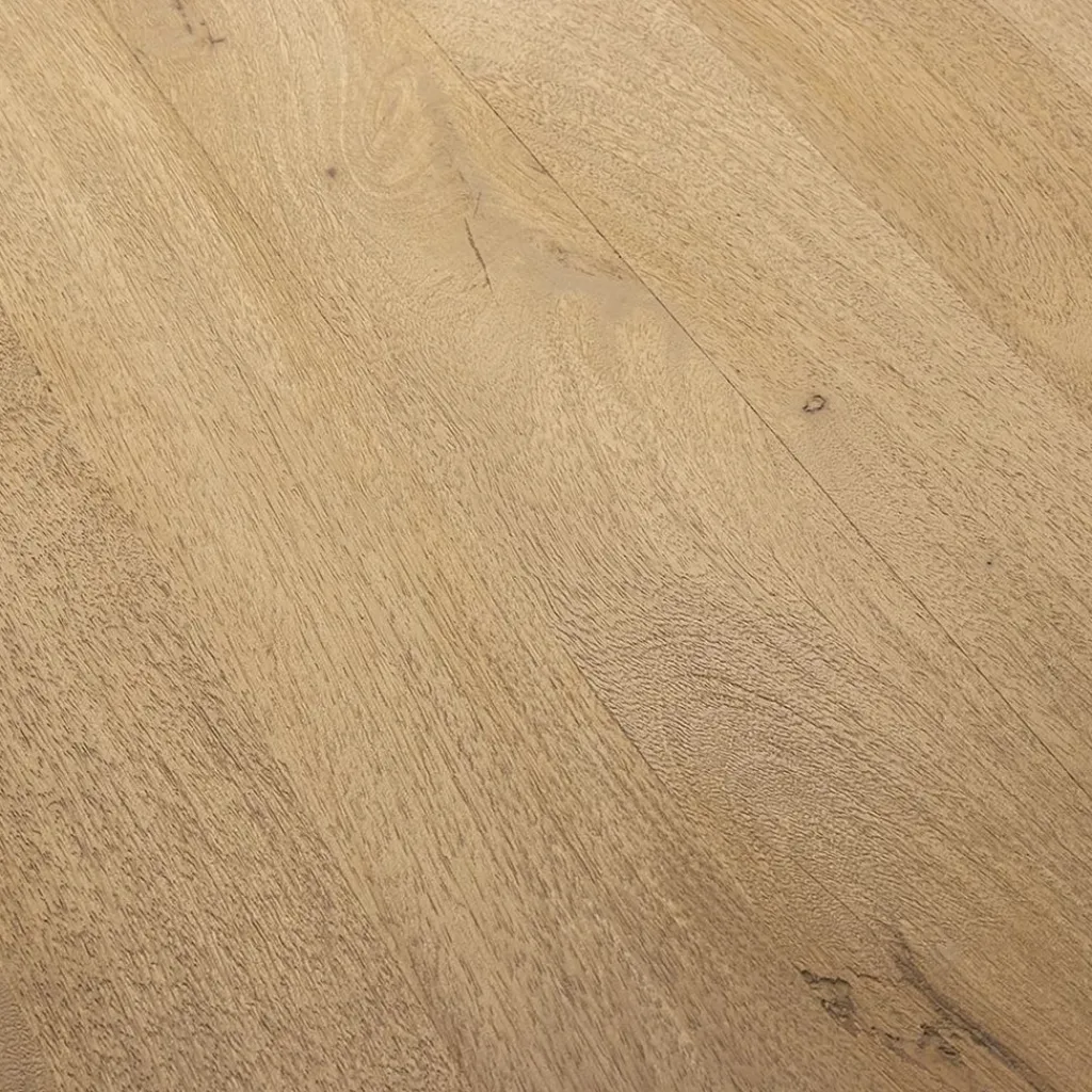 Een stoere rechthoekige eettafel die gemaakt is van Mangohout. Dit is echter bijna niet te zien omdat het hout gebleekt en licht geborsteld is. Dit zorgt ervoor dat het hout een totaal andere look dan normaal mangohout krijgt. Het mangohout is als laatste afgewerkt met een matte blanke lak. Hierdoor laat het geen vlekken door en is het makkelijk met een vochtige doek schoon te maken. De robuuste tafel heeft een afmeting van 220×100 cm is biedt genoeg ruimte voor 6 personen