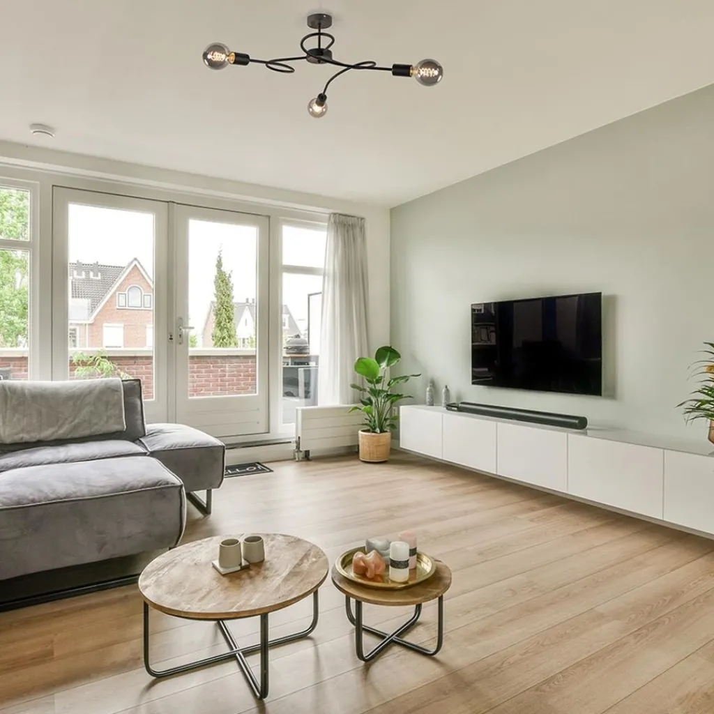 Een speelse plafondlamp met elegante lijnen. De armen van het armatuur zijn voorzien van een krul wat die retro/elegante look geeft aan de plafondlamp. Het armatuur is gemaakt van metaal en voorzien van een mat zwarte finish. De lichtbron is bepalend voor de sfeer van de lamp. Deze is exclusief. Zo kunt u zelf de ideale lichtbronnen kiezen die passen bij uw woonstijl. De mat zwarte 3-lichts plafondlamp is dimbaar middels een externe dimmer (exclusief) en is een mooie toevoeging aan een slaapkamer of woonkamer.