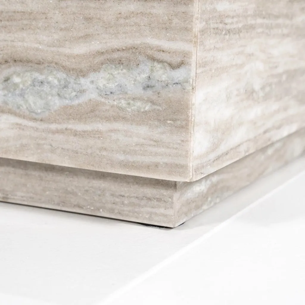 Marmeren salontafel. Deze salontafel van marmer straalt echt luxe uit. Marmer is een duurzame steensoort met een stijlvolle uitstraling. De marmer heeft verschillende kleurschakeringen. Hierdoor zijn alle tafels uniek. Deze salontafel is ook verkrijgbaar als een bijzettafel.