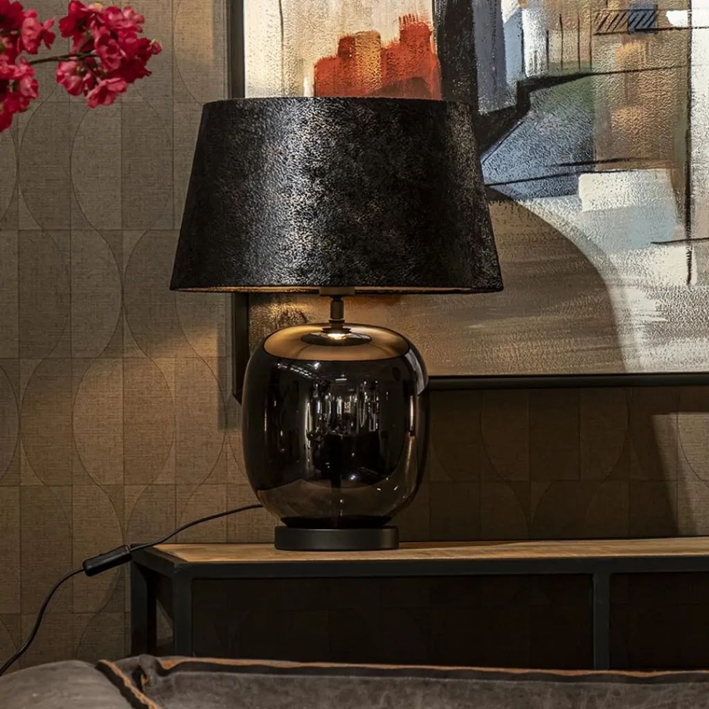 Straluma Tafellamp zwart glas met ronde kap 40 cm> Tafellampen|Schemerlampen
