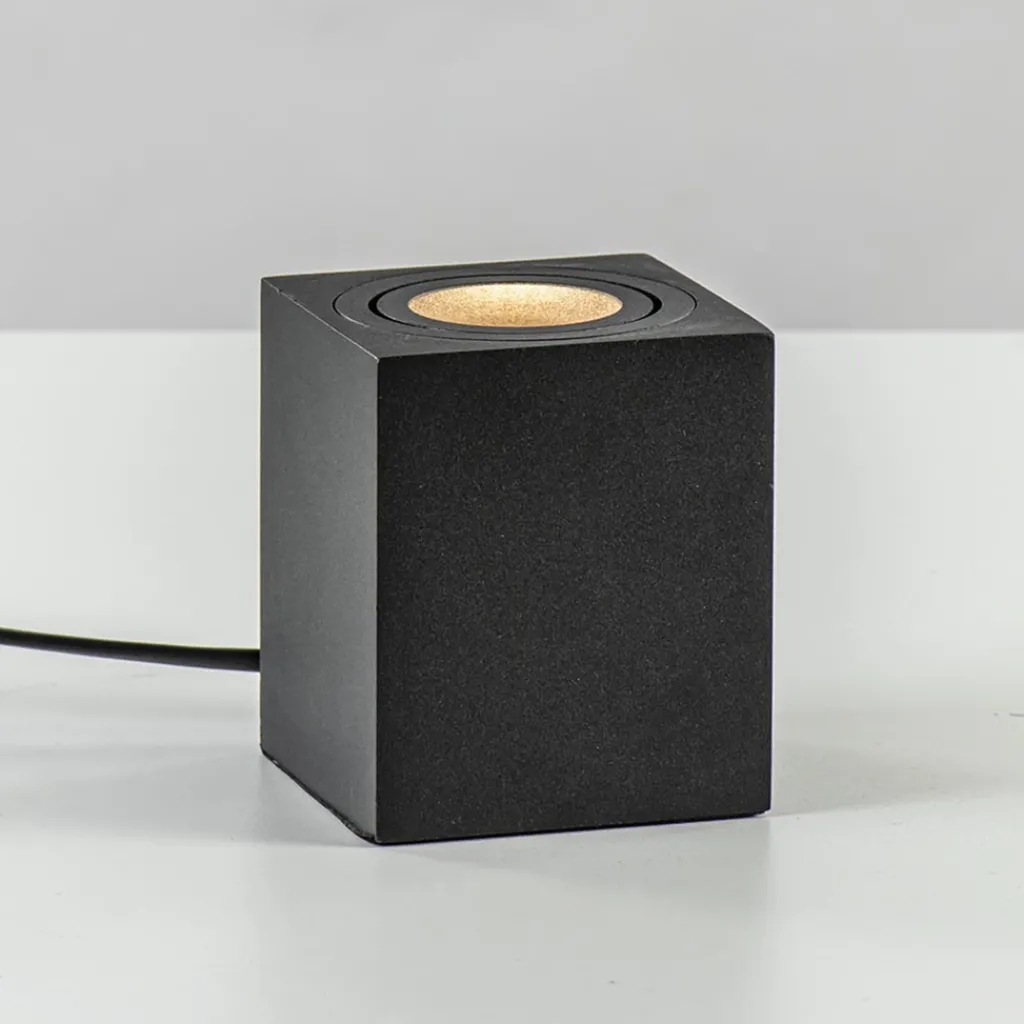Een spot hoeft niet alleen aan het plafond handig te zijn. Ook deze kleine tafellamp is een ideale toevoeging aan het interieur. Perfect om een kast of een donkere hoek uit te lichten. Zet de tafellamp daar waar u hem nodig heeft. De GU10 spot is te draaien en te kantelen zodat u de lichtrichting ook kunt bepalen. De kleine vierkante tafellamp is gemaakt van metaal en uitgevoerd in het zwart. Het snoer heeft een lengte van 195 cm en is op 55 cm voorzien van een knipschakelaar. De GU10 tafellamp spot wordt geleverd zonder lichtbron.