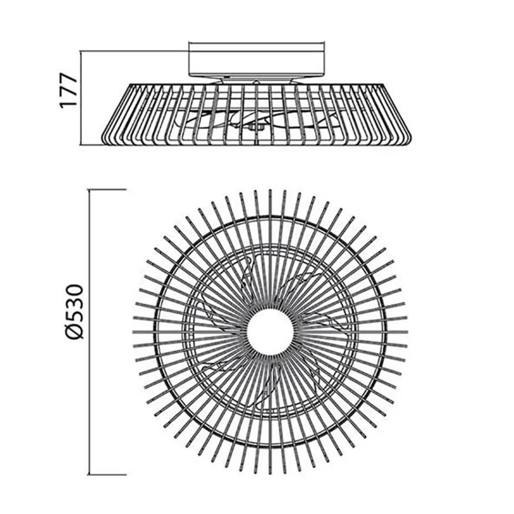 Een moderne design plafondventilator met LED zoals we deze nog niet eerder hebben gezien. De ronde ventilator oogt meer als een plafondlamp dan een ventilator maar heeft wel beide functies in één. De architectonische kap geeft de plafondventilator een design look die door de grootte van 53 cm doorsnede een mooie eye-catcher is. De moderne plafondventilator met lamp is voorzien van een geïntegreerd LED met een aantal functies. Zo kunt u de kleurtemperatuur kiezen tussen de 2700 en 5000 Kelvin en kunt u gemakkelijk de lamp dimmen. Dit bediend u allemaal gemakkelijk en snel met de meegeleverde afstandsbediening. Een ideale plafondlamp en ventilator in één die ook nog eens een strakke design uitstraling heeft.