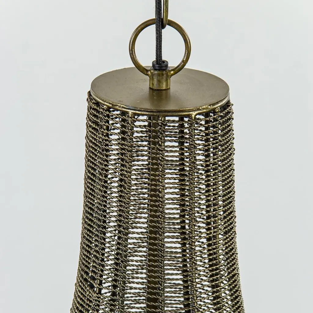 Sfeervol en trendy in één, deze metalen 2-lichts hanglamp. De kap is volledig gevlochten uit metaaldraad en voorzien van een antiek bronzen finish. Dit geeft de lamp een romantische en landelijke look. De metalen kap hangt aan een stevige metalen ketting en een zwart stof omwonden snoer die beide in hoogte zijn te verstellen. Khedira wordt aan het plafond bevestigd met een mat zwarte balk van 90 cm. De hanglamp past mooi boven een salon- of eettafel.