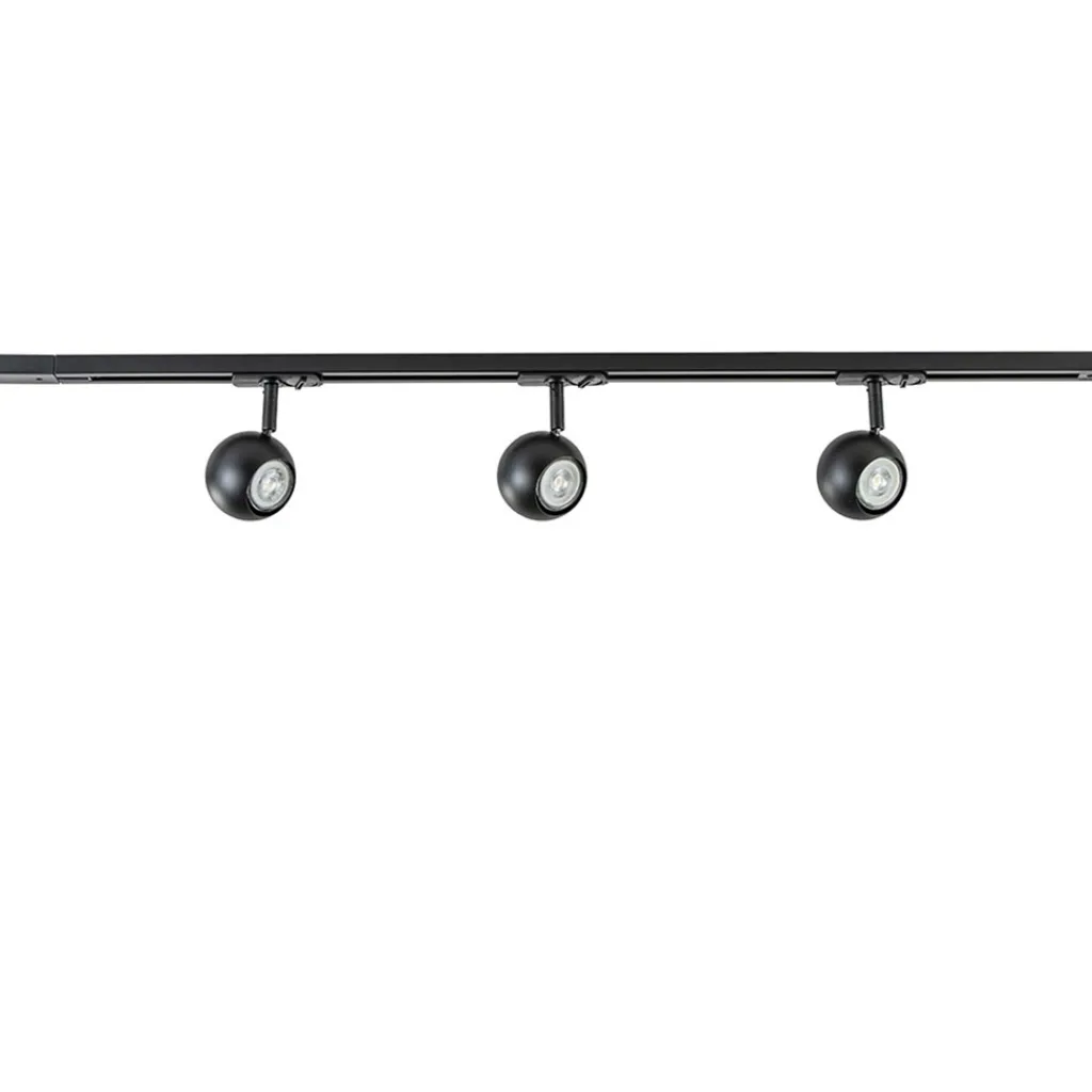 Ideaal om een ruimte extra uit te lichten of meer sfeer aan te brengen. Dit 1-fase railsysteem wordt geleverd inclusief 3 spots, beide uitgevoerd in het zwart. De rail heeft een lengte van 100 cm waar de spots gemakkelijk op kunnen worden verdeeld. Druk de spot in de rail en zet hem vast door de knop om te zetten. De spots kunnen verder nog draaien en kantelen. Bepaal dus zelf hoe u het licht wilt verspreiden. Het railsysteem heeft 1-fase, dit houdt in dat alle lampen tegelijk zullen worden in- en uitgeschakeld. Handig voor in een lange hal of slaapkamer, maar ook in de keuken of woonkamer past dit systeem perfect. De smalle rail en de ronde spots geven een strak en modern geheel aan de ruimte. Het zwarte railsysteem is dimbaar met een externe dimmer.