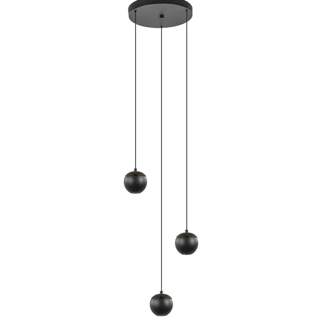 Straluma 3-Lichts ronde LED hanglamp bollen zwart met goud> Hanglampen|Eetkamerverlichting