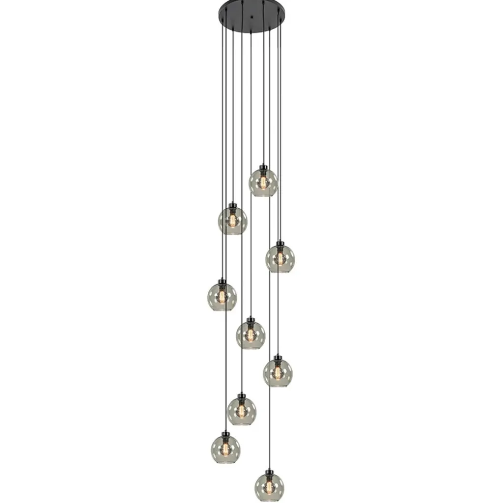 Bent u creatief? Dan is dit dé lamp voor u! De 9 glazen bollen kunnen afzonderlijk van elkaar versteld worden, zodat u de glazen hanglamp kan vormgeven in uw favoriete stijl. Als u van een speels uiterlijk houdt, kunt u de glazen op willekeurige hoogtes verstellen. Ligt uw voorkeur meer bij de klassieke stijl? De ronde plafondbevestiging geeft u de mogelijkheid het geheel spiraalvormig te laten afdalen. De maximale lengte van 400 cm maakt het toepasbaar in een vide. Het smoke-effect van de glazen, in combinatie met de mat zwarte plafondplaat, geeft deze multipendel een luxe, maar ook een stoere uitstraling. De sfeer die het glas zal vormen, is afhankelijk van het type lichtbron. Om uw gewenste sfeer te kunnen creëren, is het dus van belang dat u het juiste type lichtbron uitkiest.