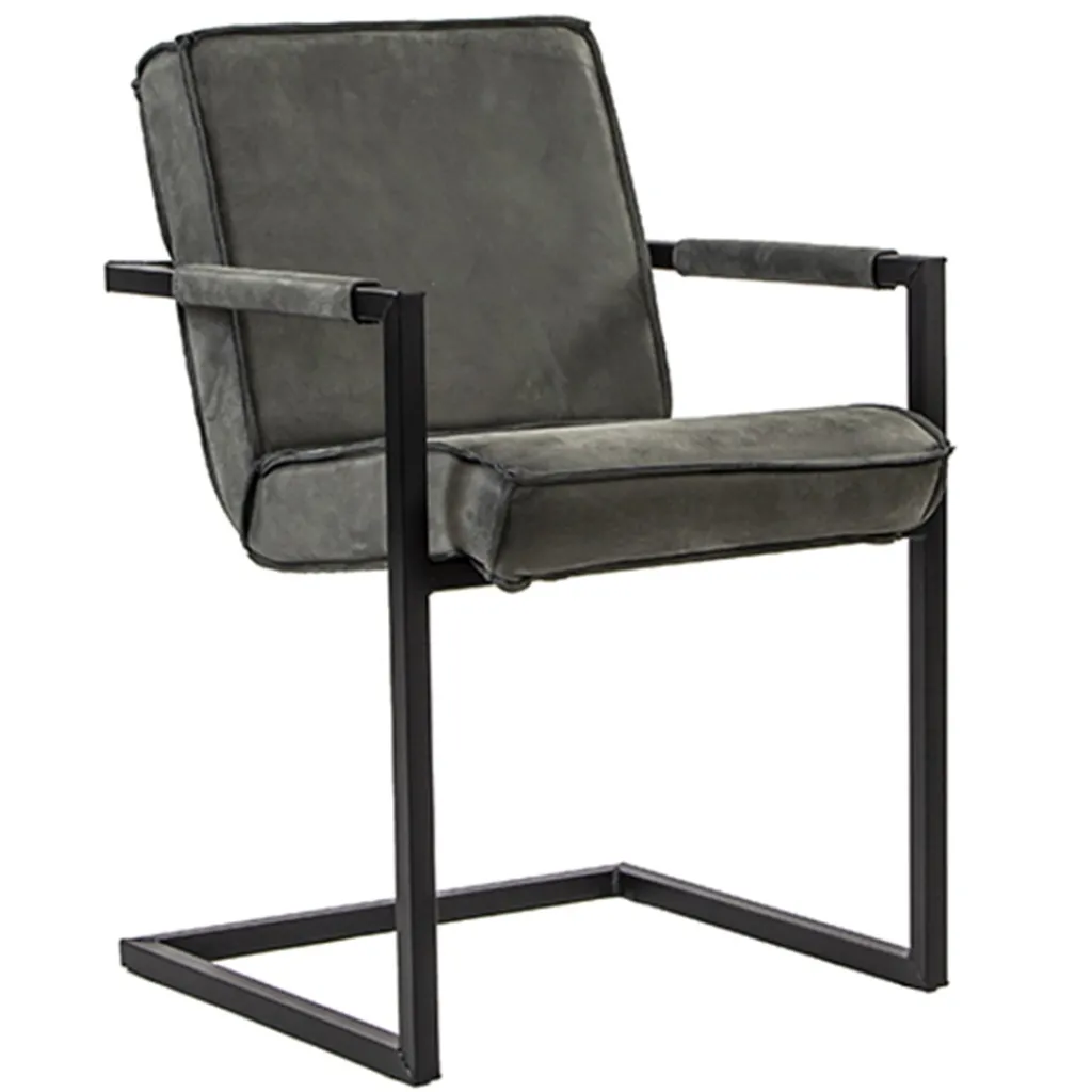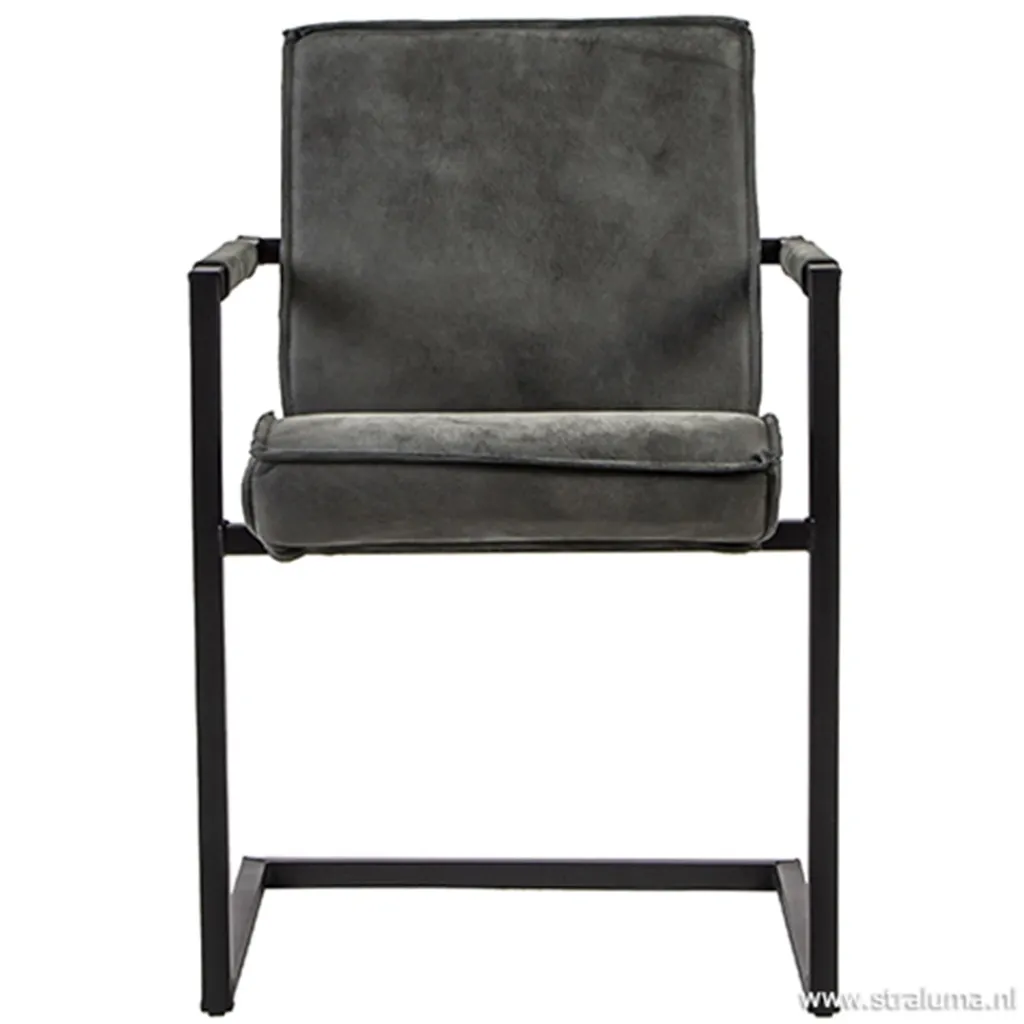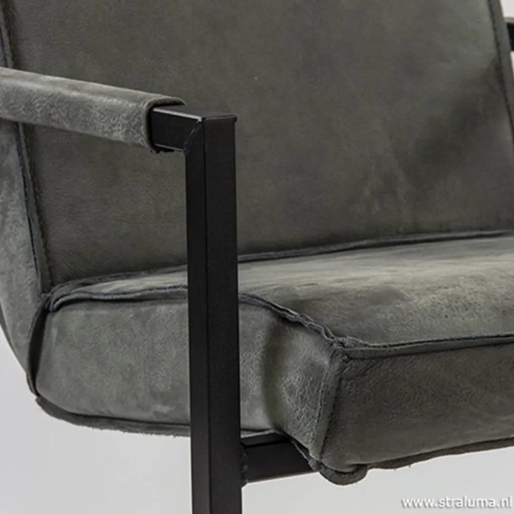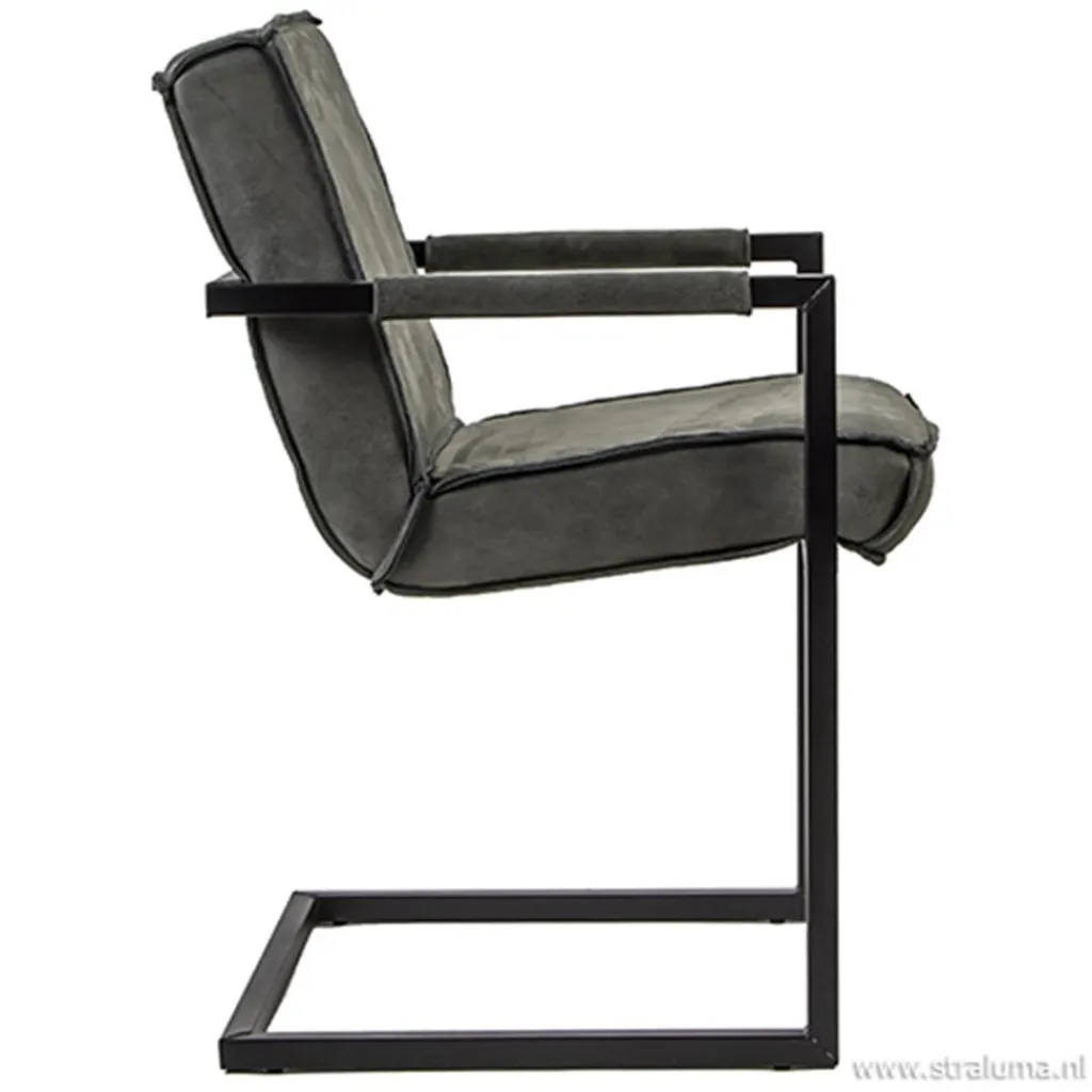 Straluma Antraciet lederen armstoel met zwart> Eetkamerstoelen