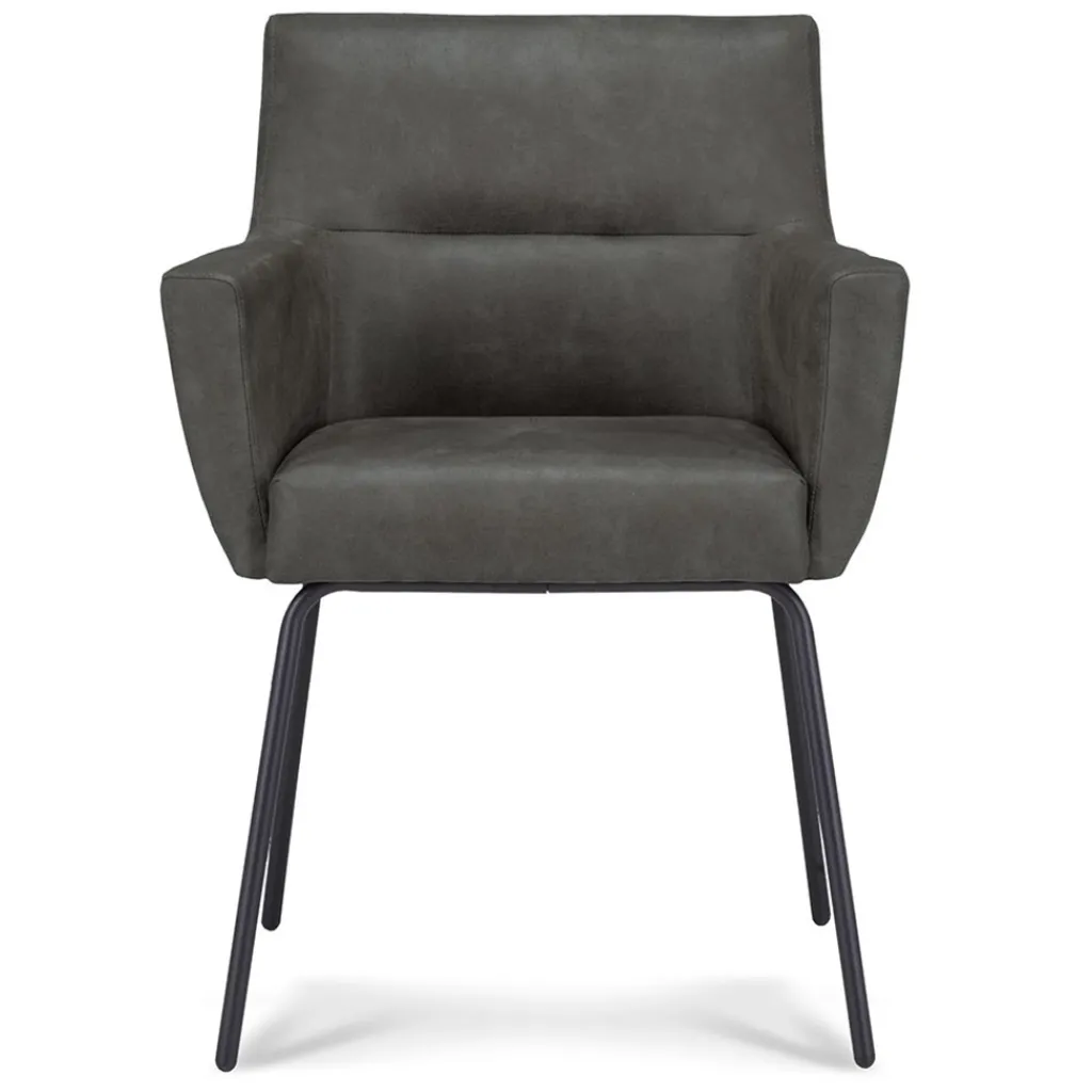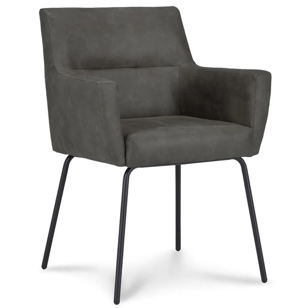 Straluma Armstoel Microleder Bull antraciet met zwarte poot> Eetkamerstoelen