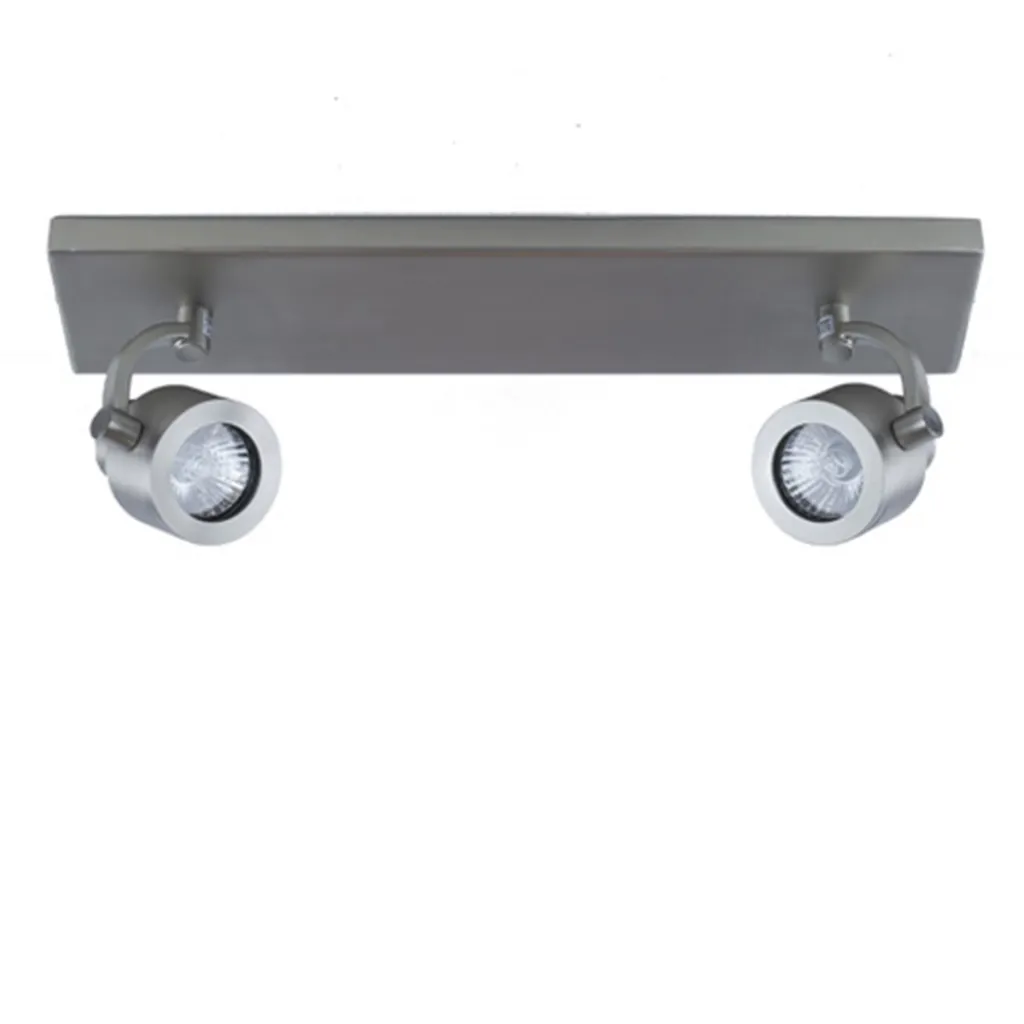 Een stalen opbouwspot uitgevoerd met twee spots. De spots zijn onafhankelijk van elkaar te draaien en kantelen. Deze plafondlamp doet uitstekend dienst voor het uitlichten van objecten of donkere hoeken in de ruimte. Ideaal is de GU10 fitting, waardoor u zelf uw soort lichtbron kunt kiezen, ook LED lampen behoort tot de mogelijkheden.