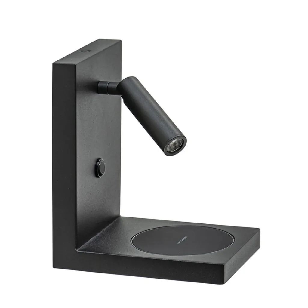 Een perfecte wandlamp voor liefhebbers van de nieuwste smartphones. De rechthoekige wandlamp is namelijk voorzien van een fast charger. Als uw smartphone dus geschikt is voor draadloos opladen dan hoeft u deze alleen maar op het plankje te leggen en de fast charger reageert automatisch, deze zal even blauw oplichten wanneer het opladen begint zodat u ziet dat er contact is. De moderne wandlamp heeft een verstelbare spot welke is voorzien van LED, ideaal wanneer u nog even wilt lezen voor het slapen. De zwarte wandlamp heeft geen snoer, het is dus van belang dat deze direct op een stroompunt kan worden aangesloten.