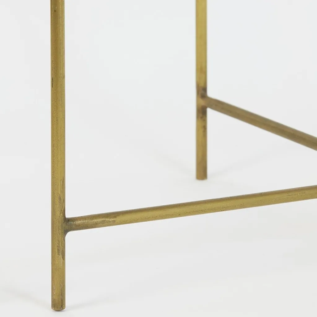 Deze trendy bijzettafels maken het interieur helemaal af. De kleurrijke tafels zijn een set van 2 en kunnen zowel samen staan als apart. Het blad van de tafels is van marmer en uitgevoerd in het roze. Dit wordt ondersteund door een metalen frame in het goud. Deze combinatie maakt de bijzettafels helemaal hip en trending.