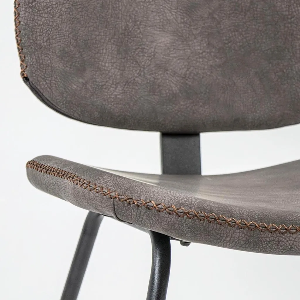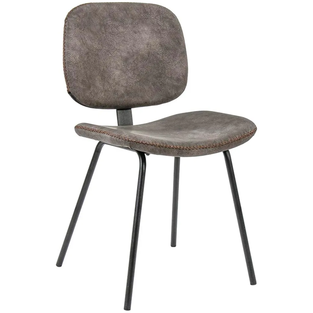 Met deze trendy eetkamerstoel maakt u uw eetkamer of eethoek helemaal af. De moderne stoel heeft een minimalistische look en feel die mooi is gecombineerd met retro details. Dit zorgt ervoor dat de stoel doet denken aan de jaren 50. De stevige stoel bestaat uit een metalen onderstel met smalle pootjes en een metalen steun in de rugleuning. Het metaal is afgewerkt met een mat zwarte poedercoating. De zitting en de rugleuning zijn gemaakt van imitatieleer met een zachte vintage uitstraling en uitgevoerd in het bruin. Leuk detail is de kruis stik waarmee het imitatieleer is afgewerkt, dit geeft de eettkamerstoel net even meer karakter.