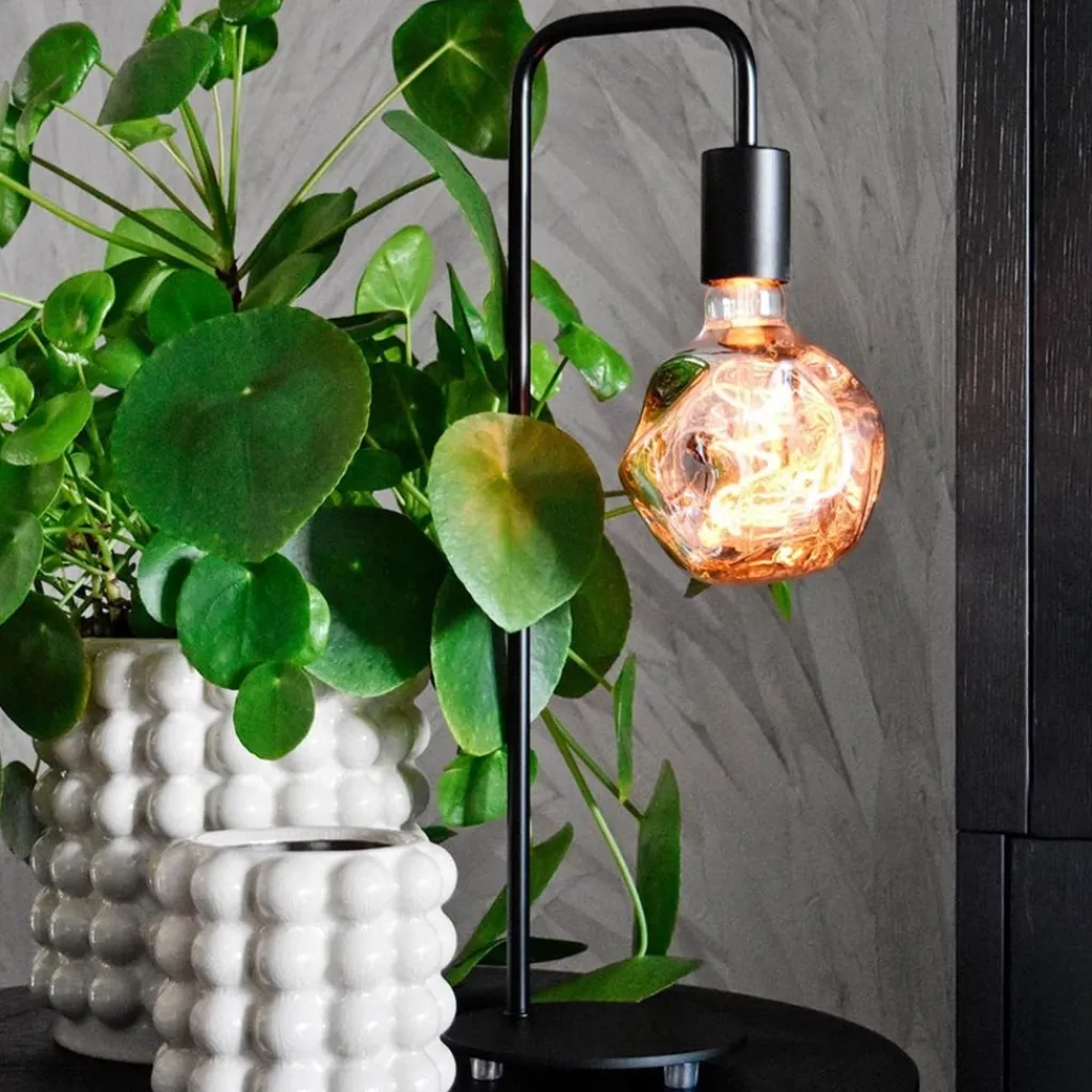 Maak het interieur nog gezelliger met deze sfeervolle tafellamp. De lamp leent zich perfect voor decoratieve lichtbronnen. Het mat zwarte armatuur is helemaal trendy en geeft een moderne uitstraling. Combineer de tafellamp met een decoratieve om het helemal af te maken. De tafellamp heeft een zwart snoer met een lengte van 150 cm.