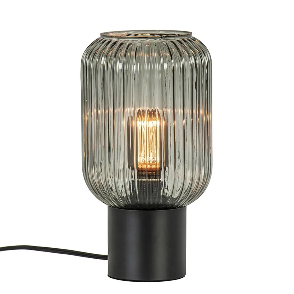 Prachtig op een dressoir, sidetable of zelfs het nachtkastje. Deze tafellamp is voorzien van een mat zwarte voet die is gecombineerd met smoke glas. Dit geeft de tafellamp een luxe, chique uitstraling die mooi is te combineren in diverse woonstijlen. De voet heeft een snoer met een lengte van 180 cm, de schakelaar zit op 30 cm van de lamp. De kleine tafellamp wordt geleverd zonder lichtbron (E27).