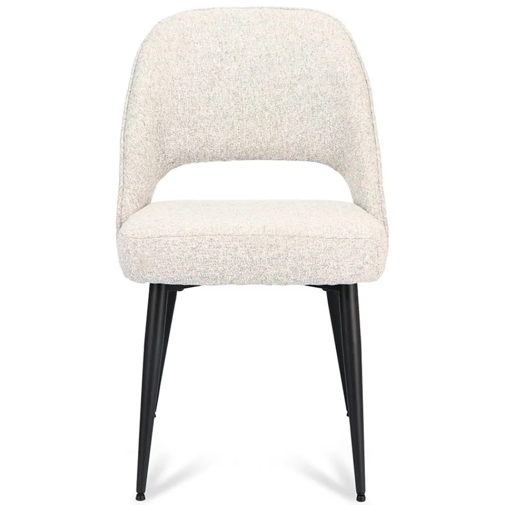 Deze stijlvolle eetkamerstoel is een mooie en comfortabele toevoeging aan de eetkamer. De stoel heeft een fijne stoffen zitting en wordt ondersteund door stevige metalen poten die zijn uitgevoerd in het zwart. Met deze stoel wordt dineren en borrelen een waar genot.