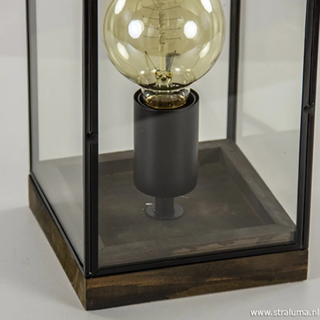 Straluma Glazen tafellamp Askjer hout met zwart> Light and Living|Woonkamerlampen