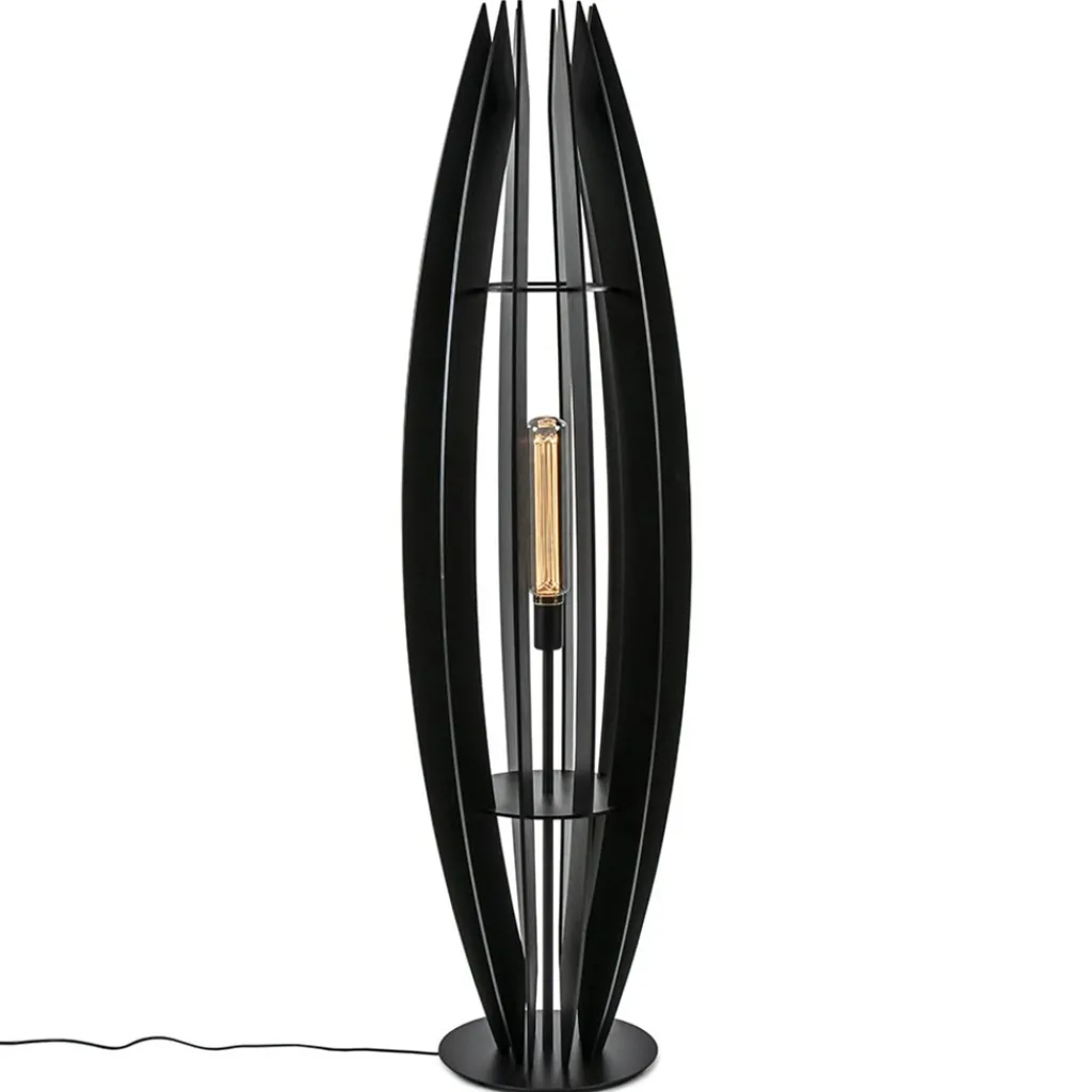 Straluma Grote houten vloerlamp mat zwart> Vloerlampen|Botanische Verlichting