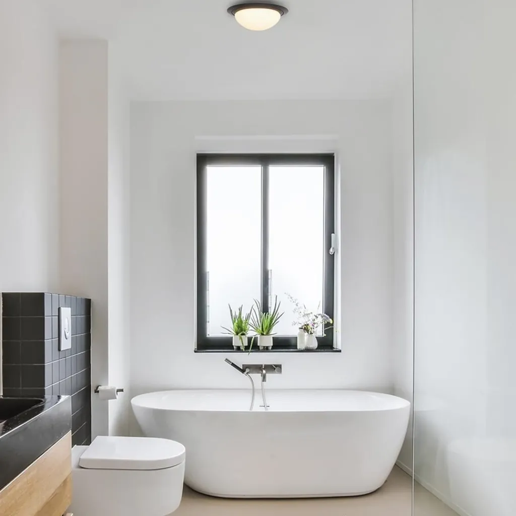 Een klassieke plafonnière in een moderne jasje. De ronde plafondlamp bestaat uit twee delen, de mat zwarte metalen ring en het witte glas. De zwarte plafondlamp is voorzien van LED verlichting waardoor de lamp energiezuinig is en met 960 lumen een prima lichtopbrengst geeft. Voor extra gemak is het LED ook dimbaar middels een 3-standen functie. Hier is geen dimmer voor nodig maar werkt met een gewone wandschakelaar. Per keer dat u de lamp snel achter elkaar aanzet dimt deze naar een volgende stand. Perfect om snel de gewenste sfeer te creëren. De zwarte plafondlamp met wit glas is IP44 goedgekeurd, zodat deze ook in een badkamer kan worden toegepast.