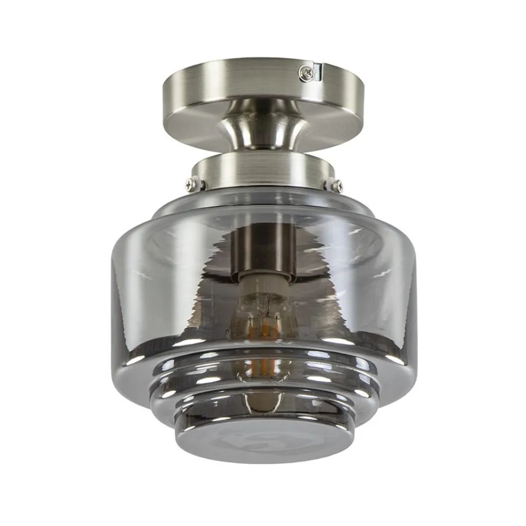Straluma Kleine plafondlamp hal/toilet met smokey glazen kap> Woonkamerlampen|Slaapkamerlampen