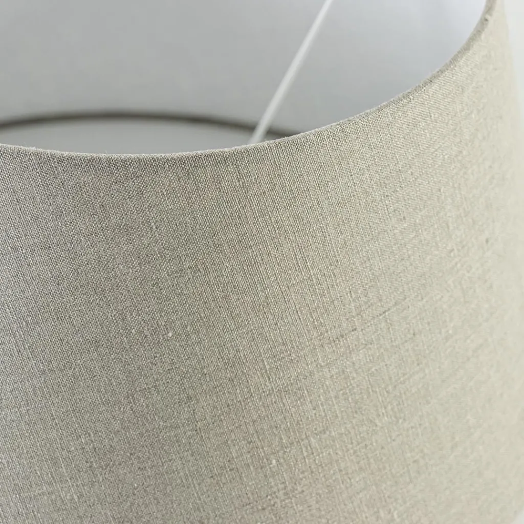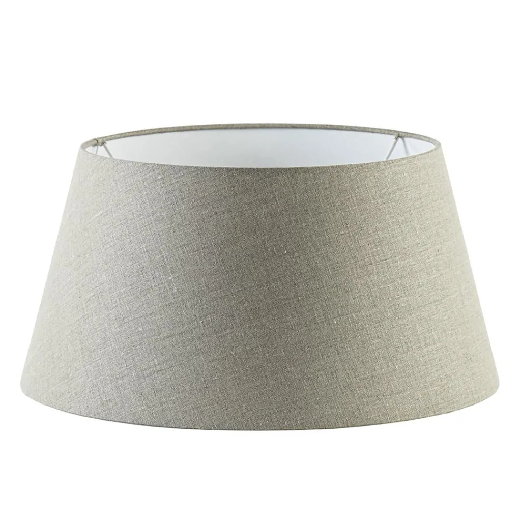 Een mooie lampenkap in het stof in de kleur creme. De kap heeft een linnen achtige look en heeft een zachte licht doorlating. De kap heeft een doorsnede van 40 cm en een hoogte van 20 cm. De binnenzijde van de kap is wit.