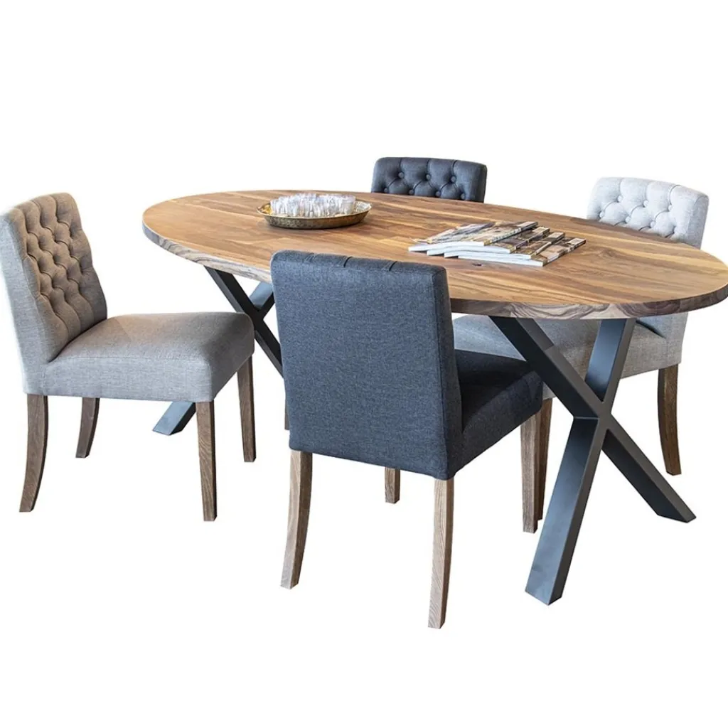 Straluma Landelijke eetkamerstoel stof met eiken pootjes> Eetkamerstoelen