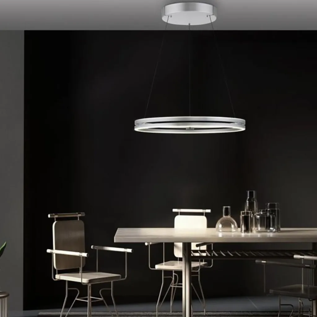 Functie, sfeer, design en luxe komen allemaal samen in deze moderne LED hanglamp. De hanglamp heeft een strak design dat is uitgevoerd in het aluminium. De ronde hanglamp is over de volledige ronding voorzien van LED verlichting. Dit is gemakkelijk te bedienen dmv de meegeleverde afstandsbediening. Kies voor de gewenste intensiteit en temperatuur met een druk op de knop. Wat deze LED hanglamp extra bijzonder maakt is dat deze is voorzien van een E-Lift functie. Dit houdt in dat de lamp elektrisch verstelbaar is. Zo is de hoogte verstelbaar van 40 tot maximaal 350 cm. U kunt dit gemakkelijk bedienen dmv de afstandsbediening. Een prachtige hanglamp met een bijzondere en moderne techniek.