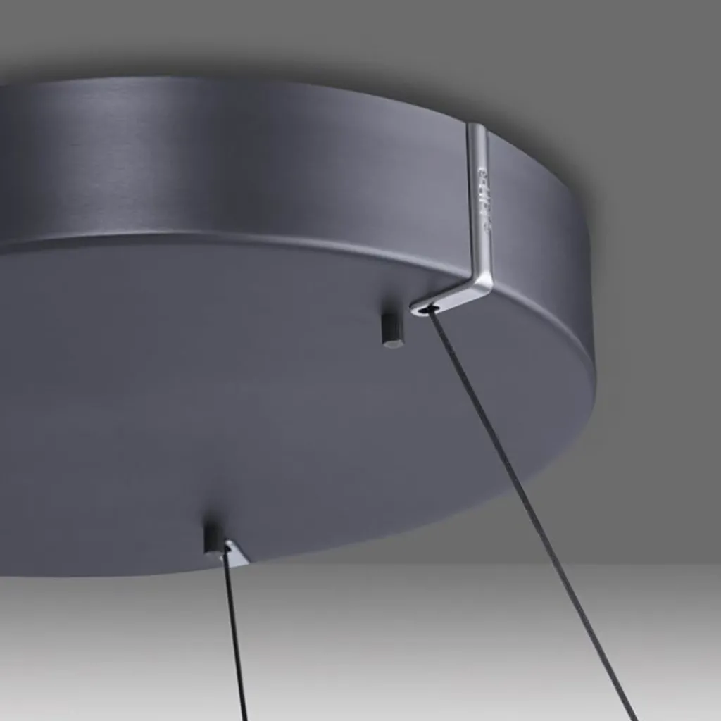 Functie, sfeer, design en luxe komen allemaal samen in deze moderne LED hanglamp. De hanglamp heeft een strak design dat is uitgevoerd in het grijs. De ronde hanglamp is over de volledige ronding voorzien van LED verlichting. Dit is gemakkelijk te bedienen dmv de meegeleverde afstandsbediening. Kies voor de gewenste intensiteit en temperatuur met een druk op de knop. Wat deze LED hanglamp extra bijzonder maakt is dat deze is voorzien van een E-Lift functie. Dit houdt in dat de lamp elektrisch verstelbaar is. Zo is de hoogte verstelbaar van 40 tot maximaal 350 cm. U kunt dit gemakkelijk bedienen dmv de afstandsbediening. Een prachtige hanglamp met een bijzondere en moderne techniek.