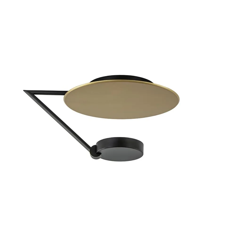 Deze design plafondlamp is een sfeermaker in de ruimte. De plafondlamp is voorzien van geïntegreerd LED en geeft indirecte verlichting. Hierdoor ontstaat er een sfeervol effect. Het licht wordt weerkaatst op de gouden plaat waardoor het ook een warme uitstraling krijgt. Door z’n formaat is de lamp prima geschikt voor een hal of kleine kamer. De LED plafondlamp zwart met goud is dimbaar middels de juiste dimmer (exclusief).