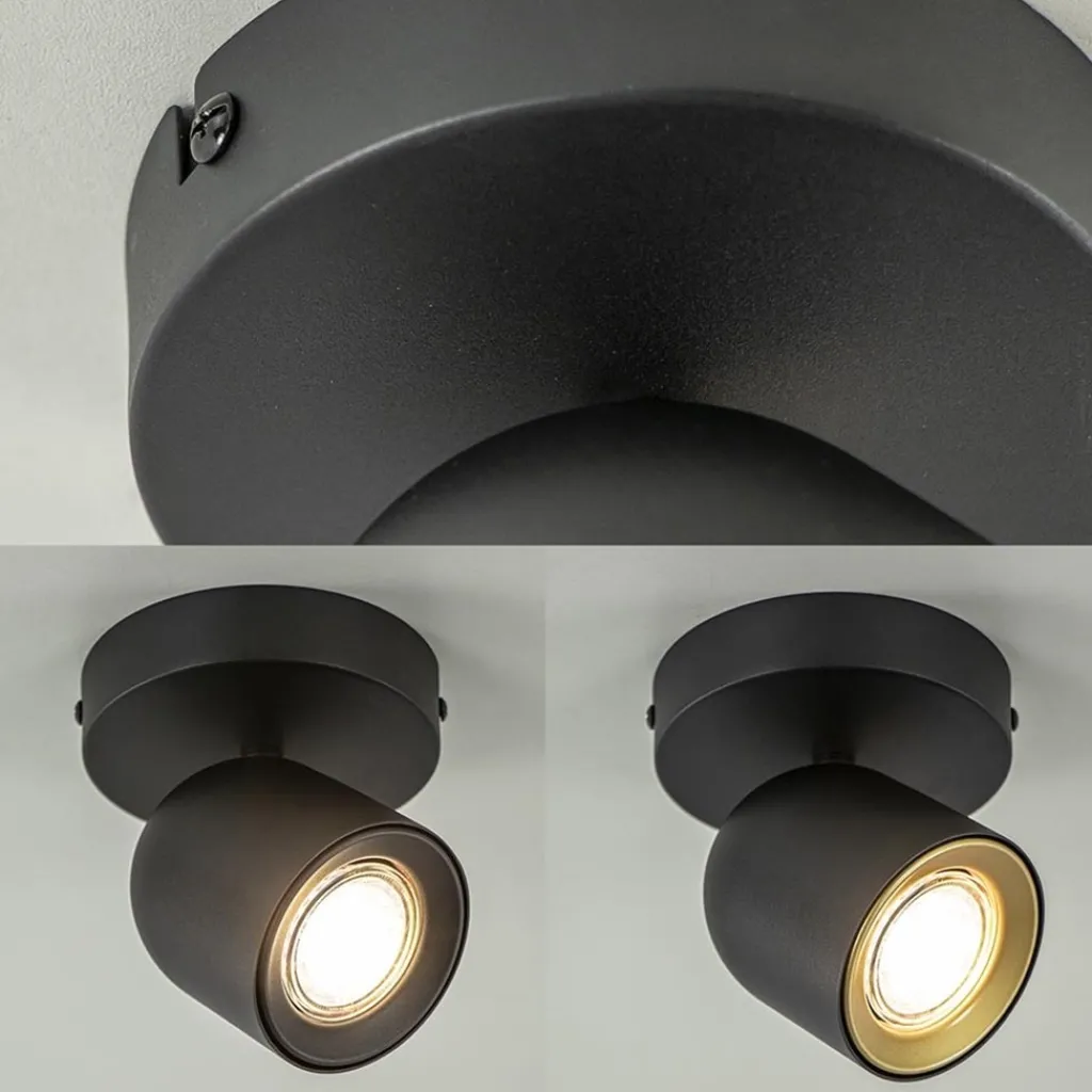 Ideaal voor het uitlichten van een donkere hoek, kunstobject of gewoon als extra sfeer in de ruimte. Deze kleine opbouwspot kan het allemaal. De spot is bevestigd op een ronde plafondplaat en is volledig naar wens te verstellen door de spot te draaien en/of te kantelen. De zwarte spot wordt geleverd exclusief lichtbron (GU10). De lichtbron wordt gemakkelijk geplaatst door het binnenkapje te verwijderen en weer terug te plaatsen. Leuk aan deze plafondspot is dat er ook een gouden kapje mee wordt geleverd zodat u zelf kunt kiezen welke u wilt toepassen. Deze enkele spot kan zowel dienen als plafond- en wandlamp.