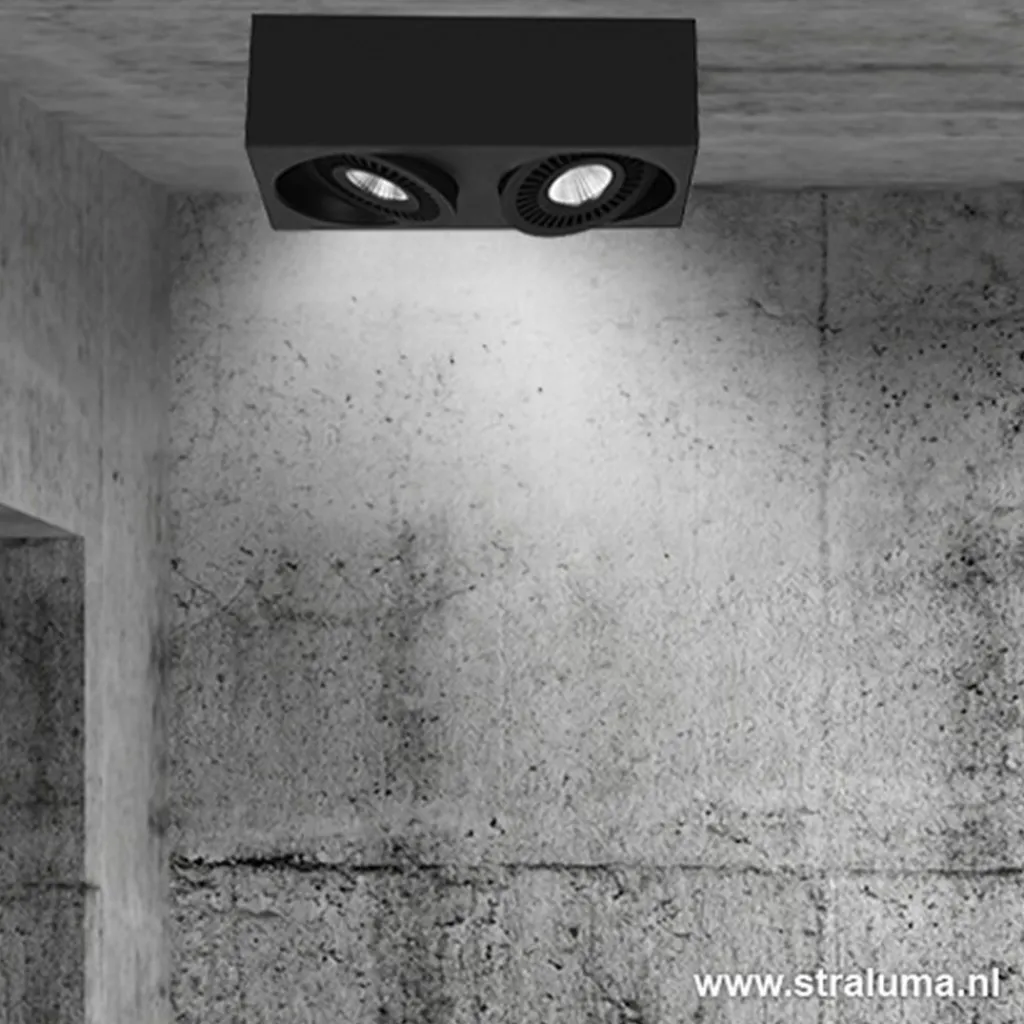 Straluma Opbouwspot box zwart 2-lichts led> Plafondlampen|Opbouwspots