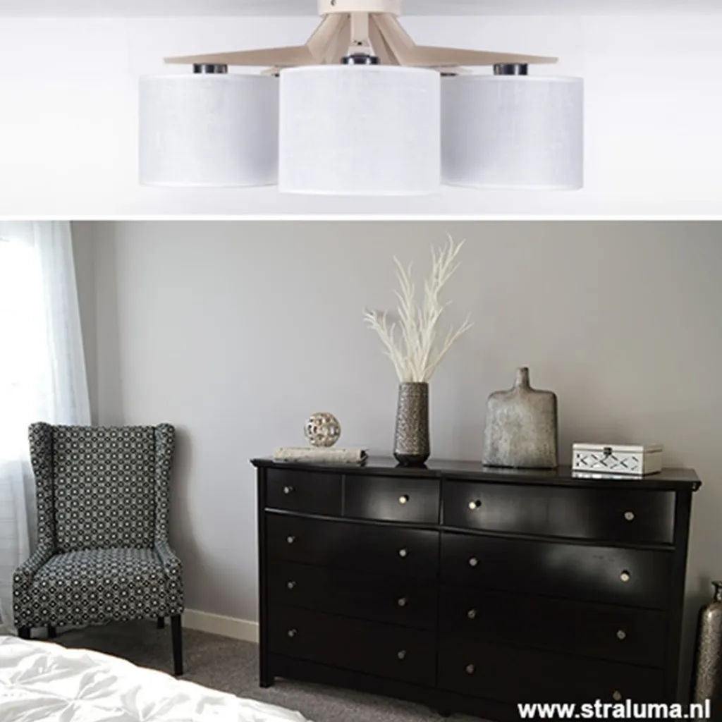 Straluma Plafondlamp 5-lichts hout/cilinderkap wit> Woonkamerlampen|Eetkamerverlichting