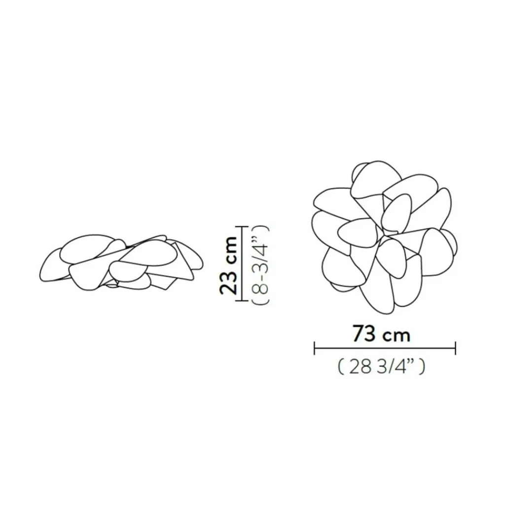 Een prachtig design van Italiaans komaf. Deze plafondlamp is volledig met hand gemaakt en bestaat uit de meest inovatieve materialen. Dit zorgt ervoor dat de elegante vormen in de kap kunnen worden toegepast. Deze is namelijk geïnspireerd op de vormen en structuren van een tutu en verse bloesem bloemen. De designlamp heeft een afmeting van 73 cm doorsnede, een echte eyecatcher aan het plafond dus. Daarnaast wordt de kap met een functioneel magnetisch systeem bevestigd op de plafondplaat. Een prachtige lamp en toevoeging aan het interieur voor de liefhebbers van design.