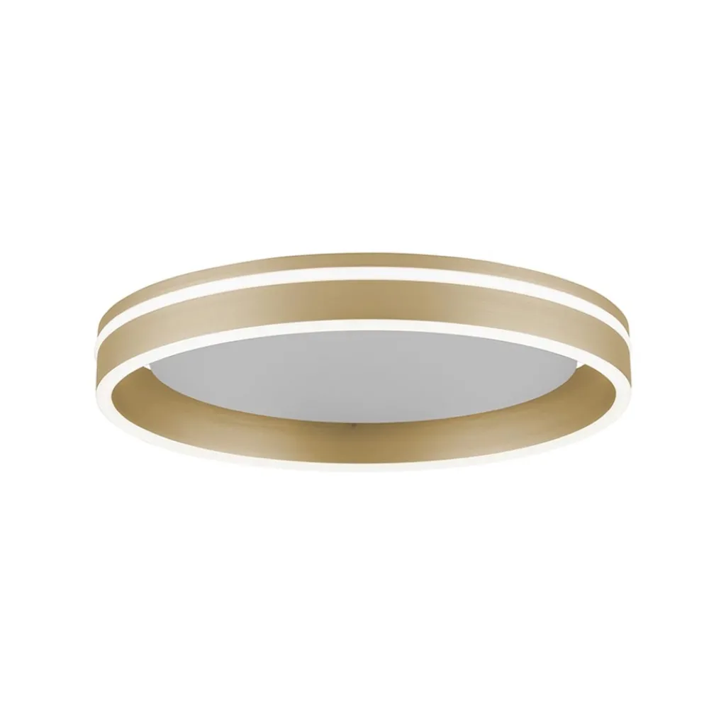 Een mooi strak design met een knipoog naar de klassieke plafonnière. Deze moderne smart plafondlamp is uitgevoerd in het mat messing en gecombineerd met LED. De LED strips in de ring zorgen voor een diffuus licht zowel naar beneden als opzij. De lamp is zowel te dimmen in lichtsterke als in lichtwarmte. De lamp is te bedienen met de bijgeleverde afstandsbediening als met de app. De plafondlamp kan geïntegreerd worden in bestaande smart systemen met een Zigbee standaard.