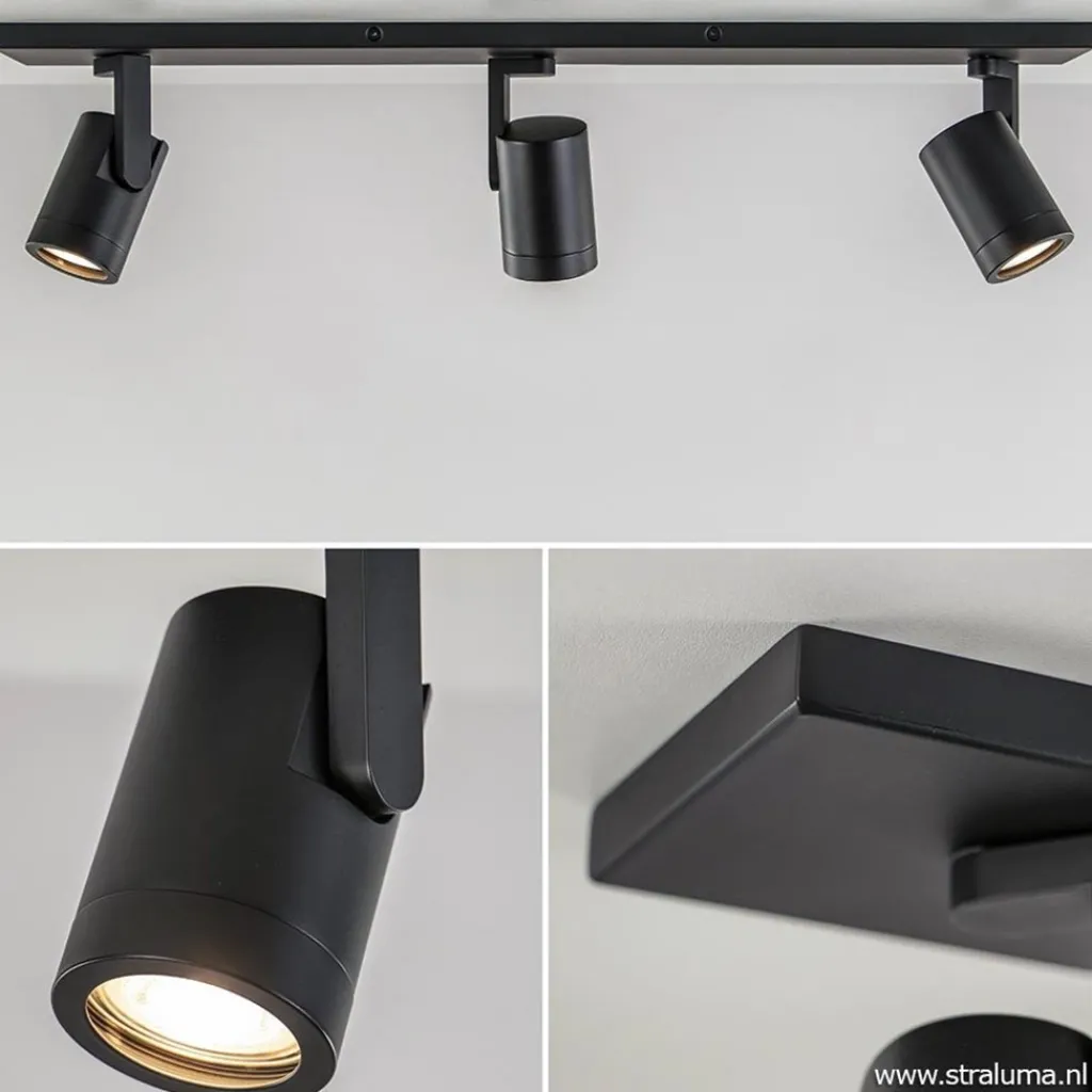 Straluma Plafondspot balk 3-lichts zwart ex.gu10> Opbouwspots|Keukenverlichting