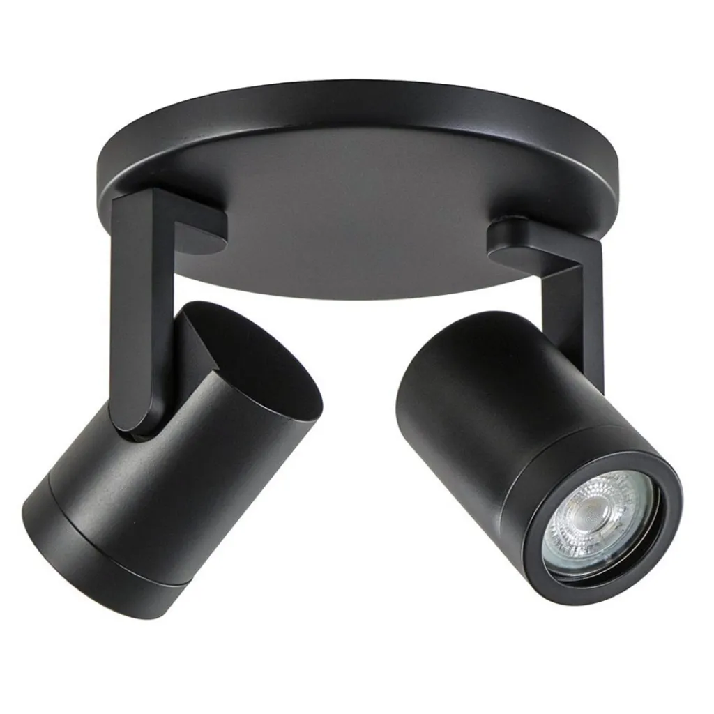 Een ronde plafondspot met een strakke vormgeving. De 2-lichts metalen opbouwspot is volledig afgewerkt in een mat zwarte finish waardoor deze een minimalistische look krijgt. Dit wordt extra benadrukt door de strakke pootjes van de spotjes en de platte bevestiging van maar 1,5 cm. De ronde spotjes hebben een afneembare ring die er gemakkelijk kan worden afgedraaid zodat de lichtbron kan worden geplaatst. De spotjes zijn zowel te draaien als te kantelen zodat u deze naar de gewenste richting kunt plaatsen. Ideaal voor in een hal of slaapkamer. De mat zwarte opbouwspot wordt geleverd zonder lichtbron (2x GU10).