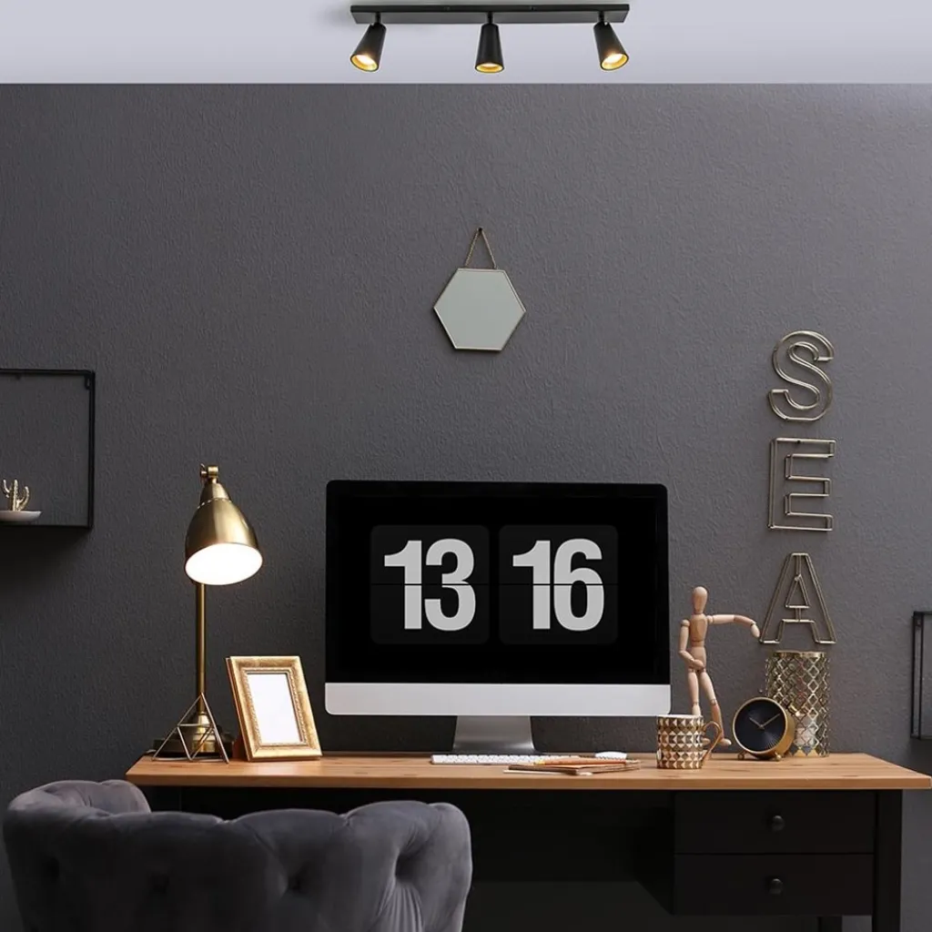 Straluma Plafondspot Petunia 3L balk zwart/goud> Opbouwspots|Keukenverlichting