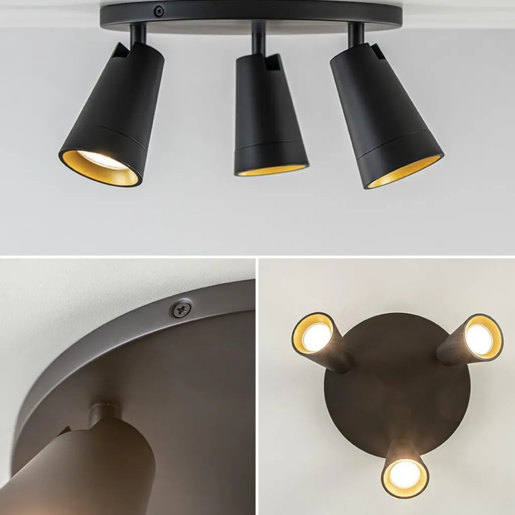 Straluma Plafondspot Petunia 3L rond zwart/goud> Opbouwspots|Woonkamerlampen