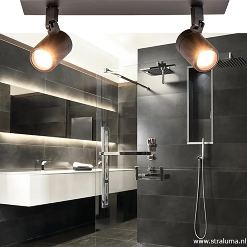 Straluma Plafondspot Rain 2L zwart balk IP44> Opbouwspots|Slaapkamerlampen