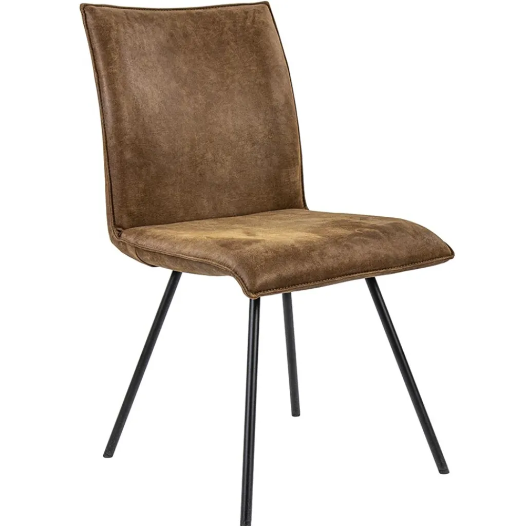 Straluma PU lederen eetkamerstoel camel met smalle zwarte pootjes> Eetkamerstoelen