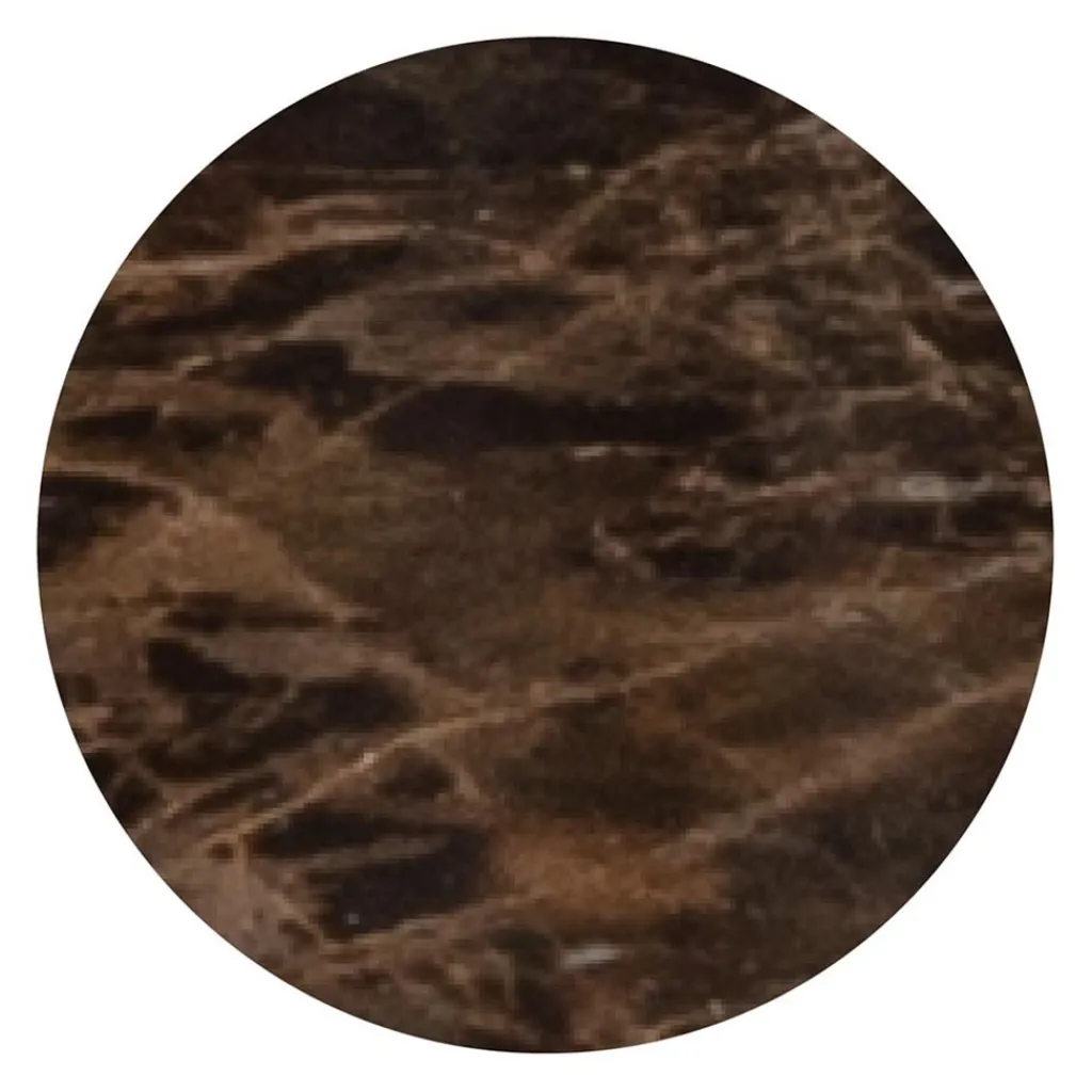 Een prachtige ronde eettafel met een luxe uitstraling. De eettafel is voorzien van een bruin marmeren blad met een doorsnede van 120 cm. Het blad wordt ondersteund door een stevige ronde metalen poot die is voorzien van een zwarte coating. De marmeren eettafel matcht mooi in een hotel chic of luxe interieur.