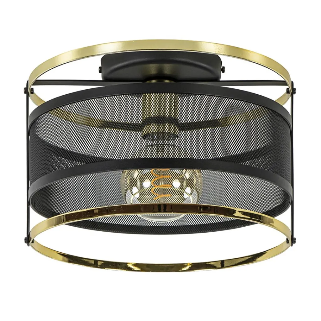 Straluma Ronde plafondlamp gaas mat zwart met hoogglans goud> Woonkamerlampen|Slaapkamerlampen