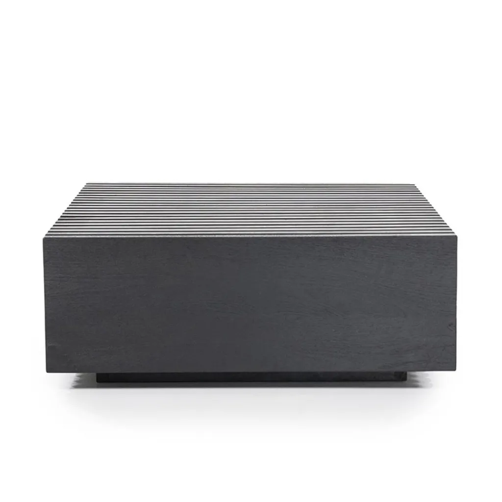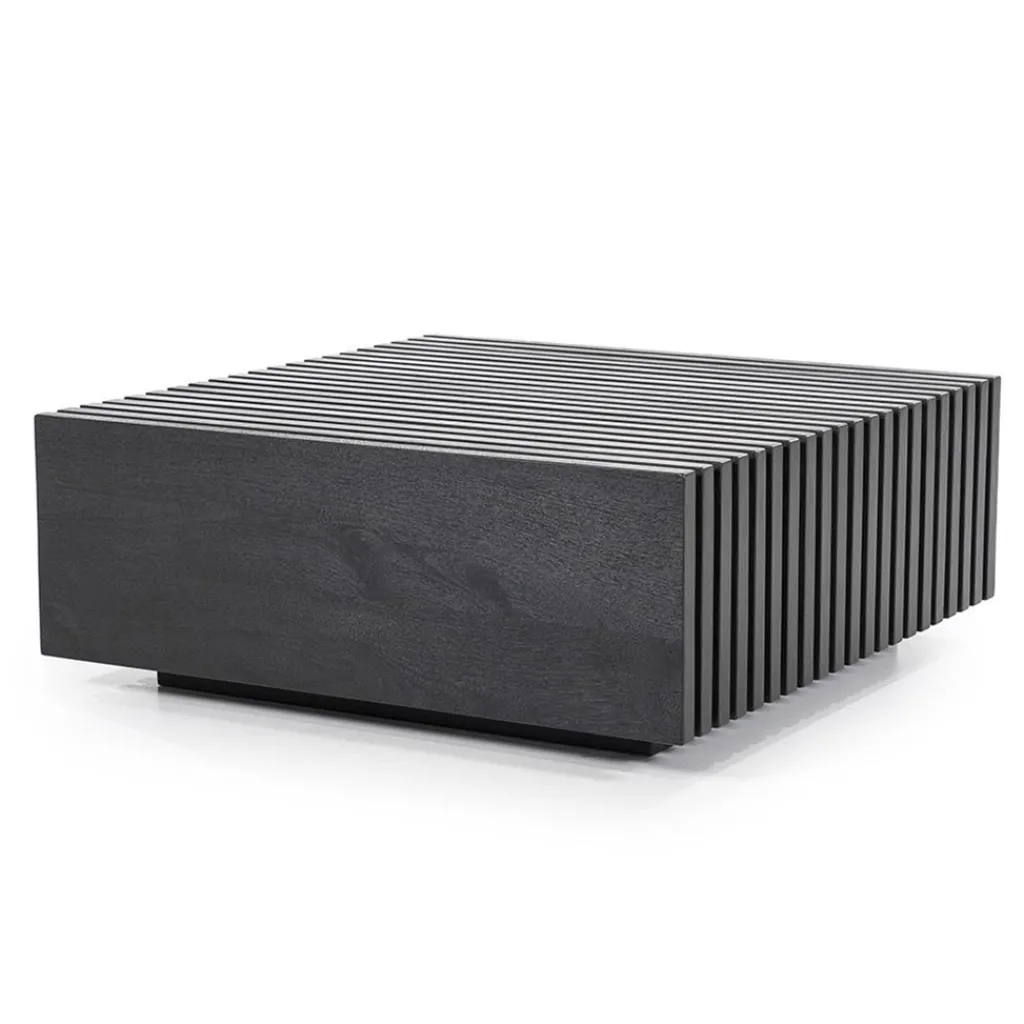 Stijlvolle zwarte salontafel van mangohout. Deze bijzettafel past mooi in een moderne, Scandinavische en landelijke woonstijl. Het mangohout is afgewerkt met een mat zwarte lak die de natuurlijke kenmerken van het hout benadrukt. De lak beschermt de salontafel. Deze salontafel komt ook als een langwerpige salontafel en een bijzettafel.