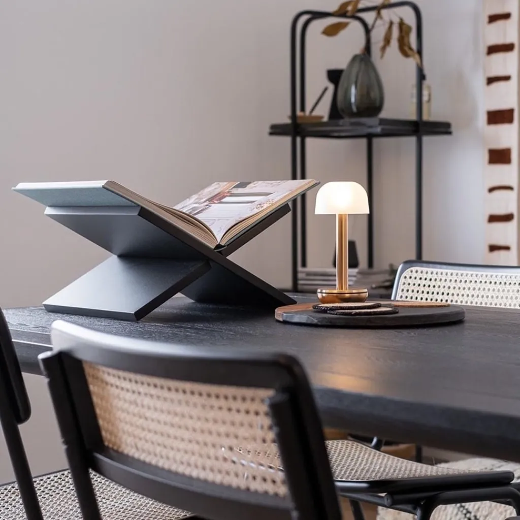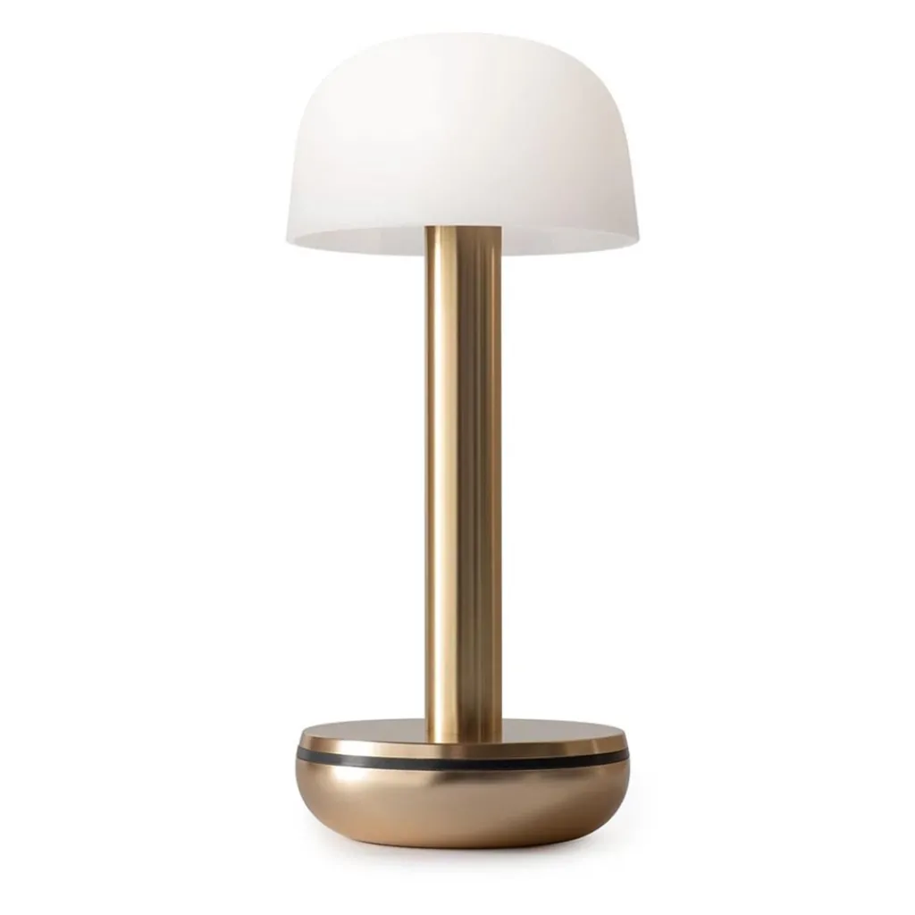 Een stijvolle tafellamp die u kunt plaatsen waar u wilt. Deze tafellamp is namelijk voorzien van een oplaadbare accu. Deze kan gemakkelijk worden opgeladen dmv de meegeleverde USB kabel of één van de verkrijgbare chargers (exclusief). De kleine tafellamp heeft een luxe uitstraling door het frosted glas dat is gecombineerd met het gouden voetje. Het tafellampje op batterij heeft een LED lichtbron en is dimbaar in 3 standen, candle, ambient en work. Door de knop onderop schakelt u gemakkelijk tussen de standen. Onderop ziet u ook snel hoe vol de accu nog is dmv de lampjes. De titanium tafellamp heeft een batterijduur van max 96 uur en wordt opgeladen binnen 4 tot 6 uur. De draadloze tafellamp is IP43 goedgekeurd zodat hij spatwater bestendig is. Ideaal wanneer u de lamp ook op uw balkon of tuin wilt gebruiken.