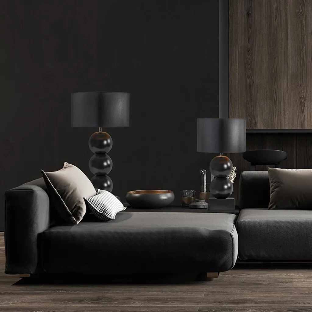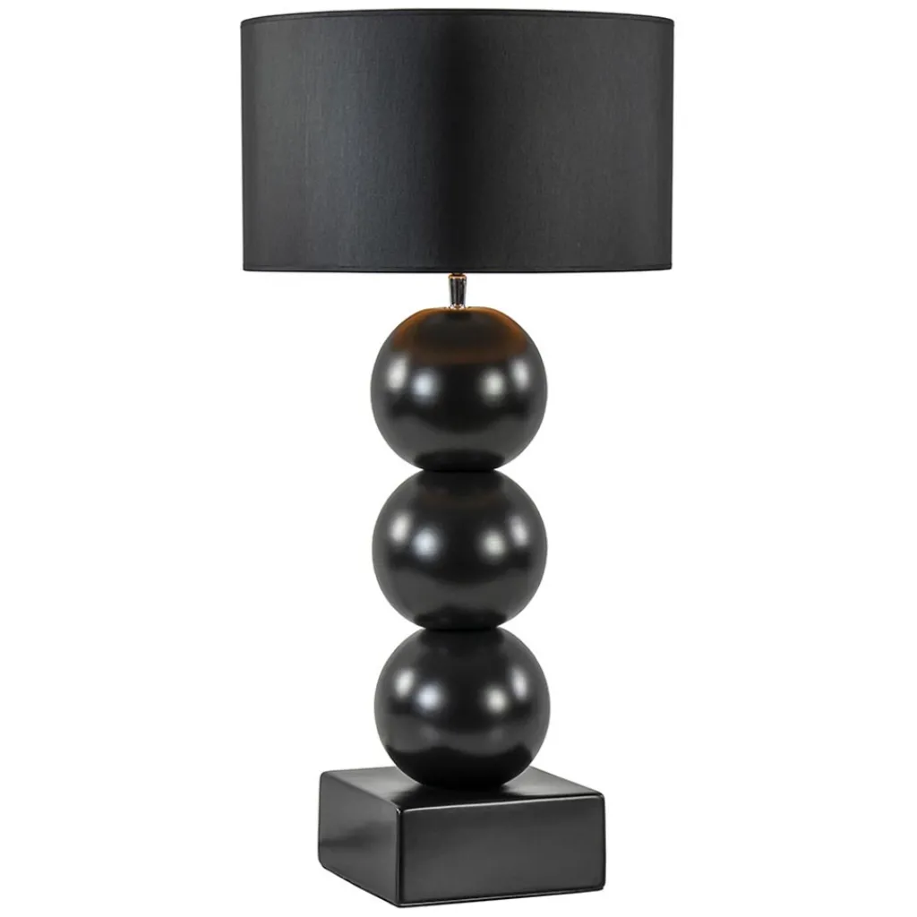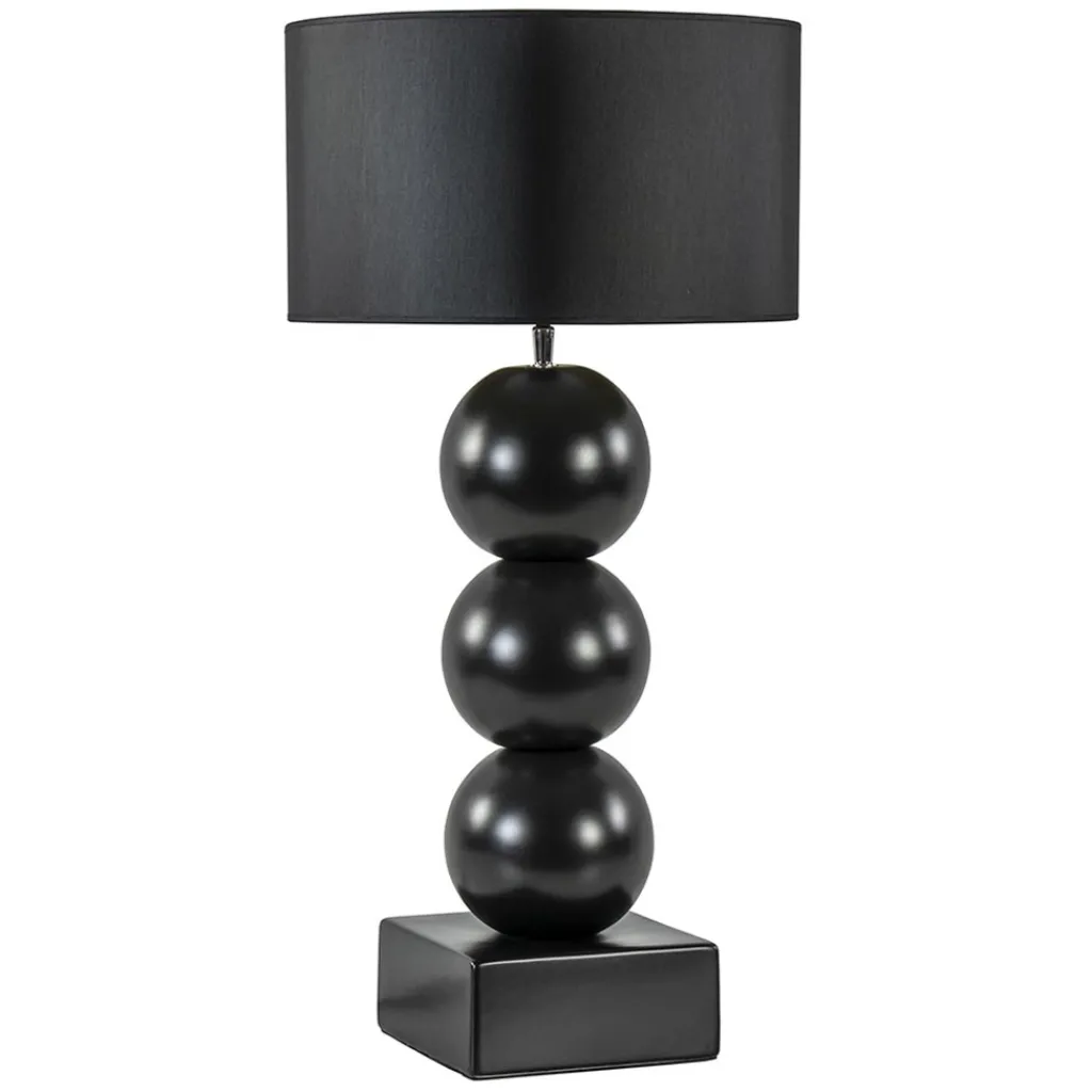 Een elegante toevoeging voor een strak klassiek of hotel chic interieur. De lampvoet is volledig gemaakt van keramiek en is uitgevoerd in het mat zwart. Dit geeft de tafellamp een luxe uitstraling die compleet wordt gemaakt door de ronde kap in het zwart/goud. Deze wordt ondersteund door een fitting met kogelgewricht zodat u de kap gemakkelijk recht kunt zetten. De tafellamp met bollen is voorzien van een zwart snoer met een lengte van 140 cm. De schakelaar bevindt zich op 20 cm van de voet. De chique tafellamp met kap wordt exclusief lichtbron geleverd.