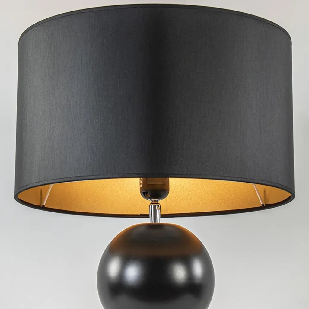 Straluma Stijvolle tafellamp keramiek zwart met kap zwart/goud> Tafellampen|Schemerlampen