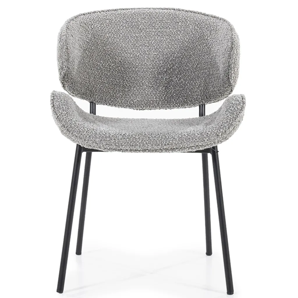 Trendy eetkamerstoel met een brede zitting. De ronde vormen van de stoel zorgt voor extra zitcomfort. Het frame van de stoel is van metaal met een mat zwarte afwerking. Deze stoel komt in 4 kleuren.