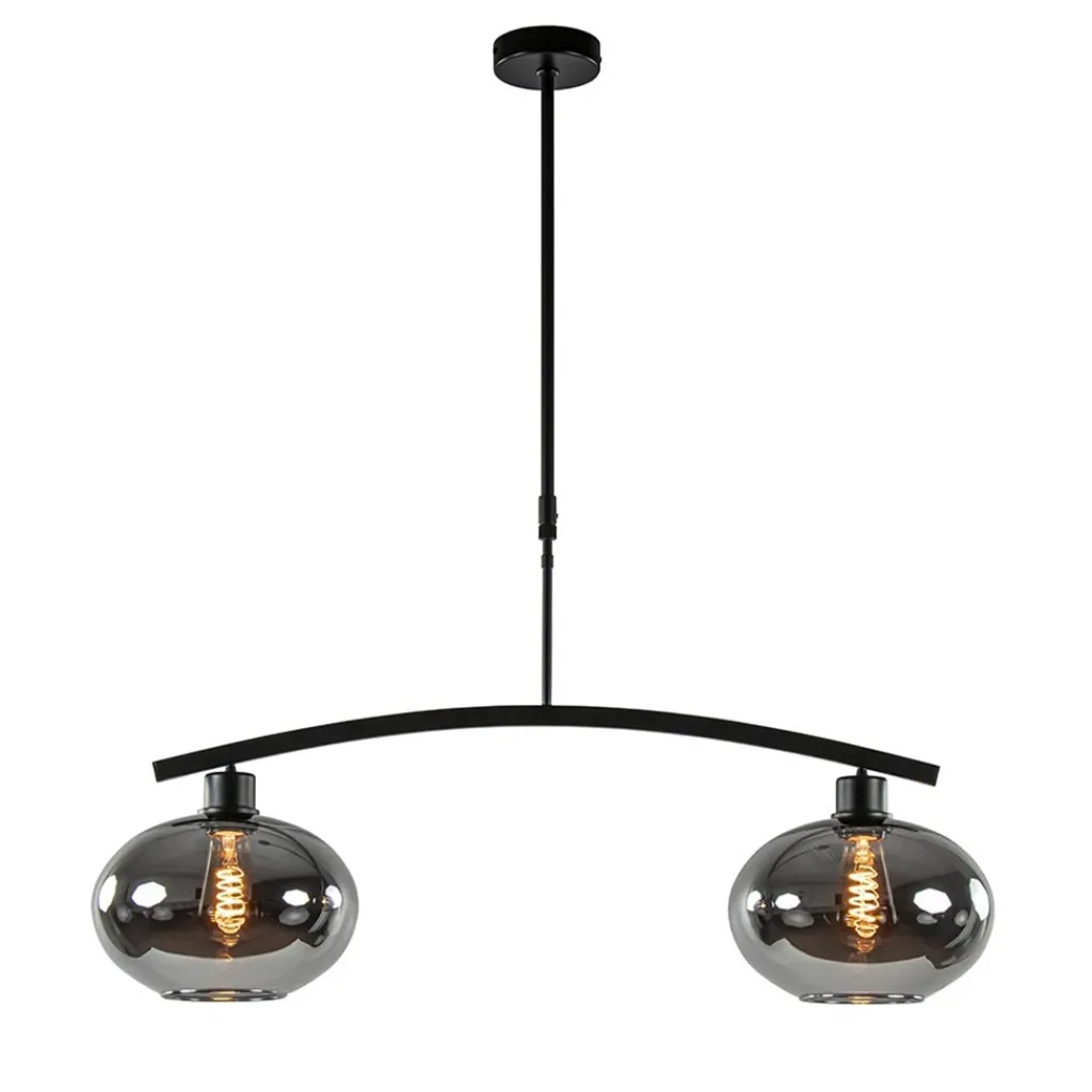 Retro, klassiek en trendy komen samen in deze 2-lichts hanglamp. Het design heeft de retro look en feel terwijl de smoke glazen kappen de chique trendy uitstraling geven. De hanglamp is in hoogte te verstellen door het schroefje op het armatuur los te draaien en het armatuur iets uit te trekken. De hoogte varieert tussen de 95 en 135 cm en maakt de hanglamp prima geschikt voor boven een eettafel. De 2-lichts hanglamp met smoke glazen kappen is dimbaar middels een externe dimmer (exclusief) en wordt geleverd exclusief lichtbronnen.